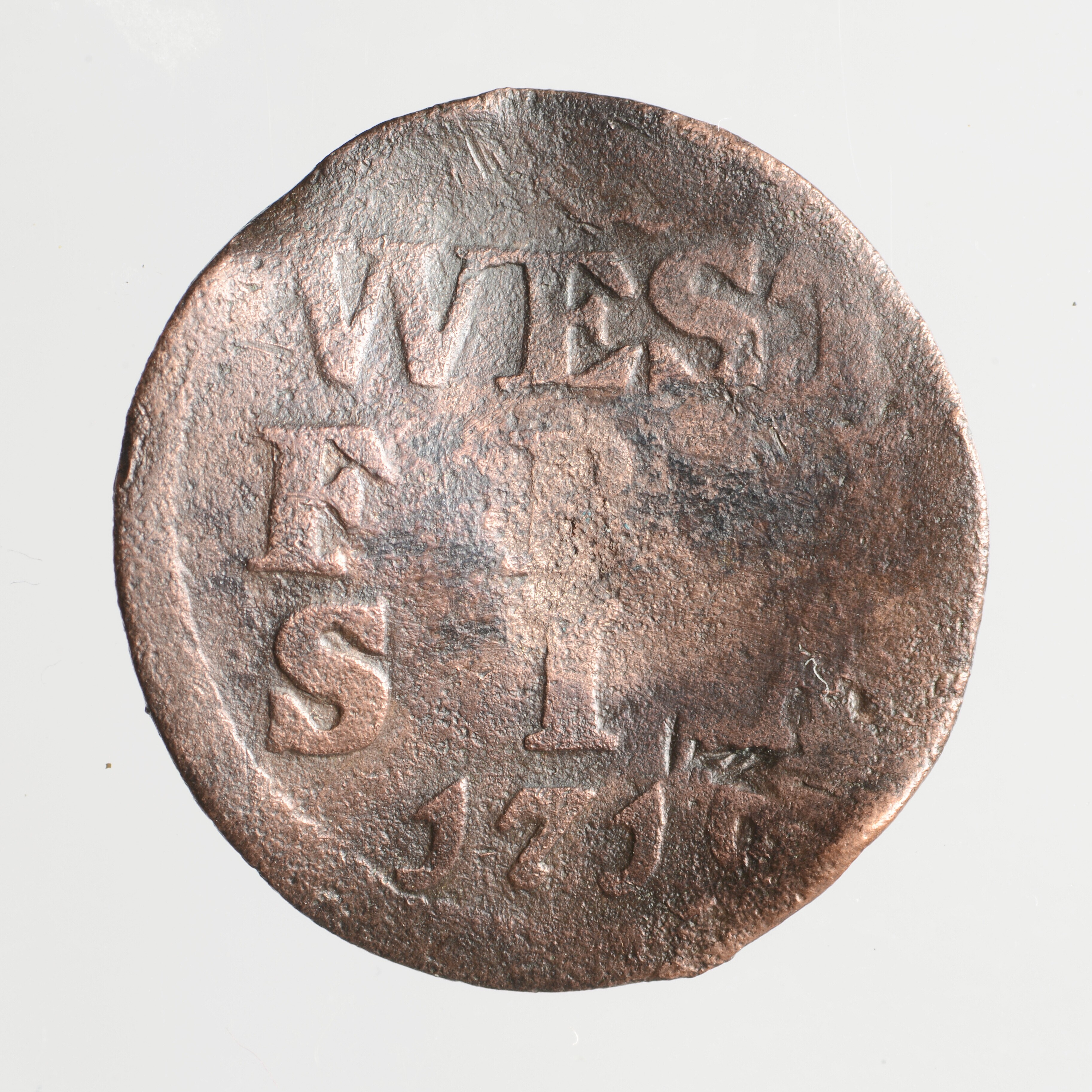 Duit; West-Friesland; vz.: (knol) / WEST / FRI / SIAE / 171[.] in vijf regels; kz.: gekroond wapen van West-Friesland, aan beide zijden versierd met lauwertakken; muntplaats: Medemblik ; gewicht: 2.00 gram