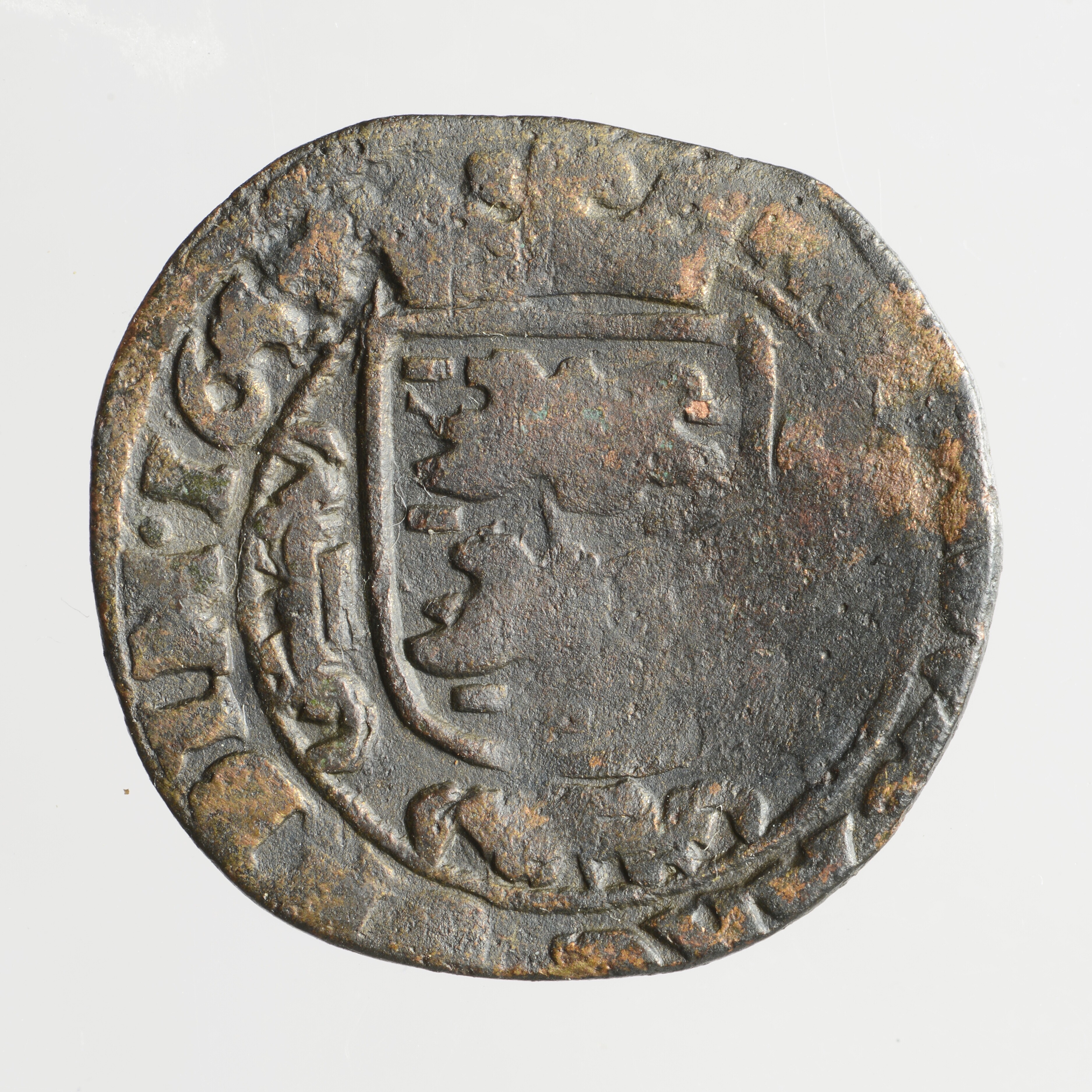 Oord; Friesland Provincie (1581-1795); vz.: Fries edelman naar rechts met zwaard over de schouder met links de letter F en rechts de letter O, omschrift NISI • DO[MINVS • NOBISCVM]; kz.: gekroond en versierd wapen van Friesland met omschrift [?} ORDIN • 164[.]; muntplaats: Leeuwarden; gewicht: 2.40 gram