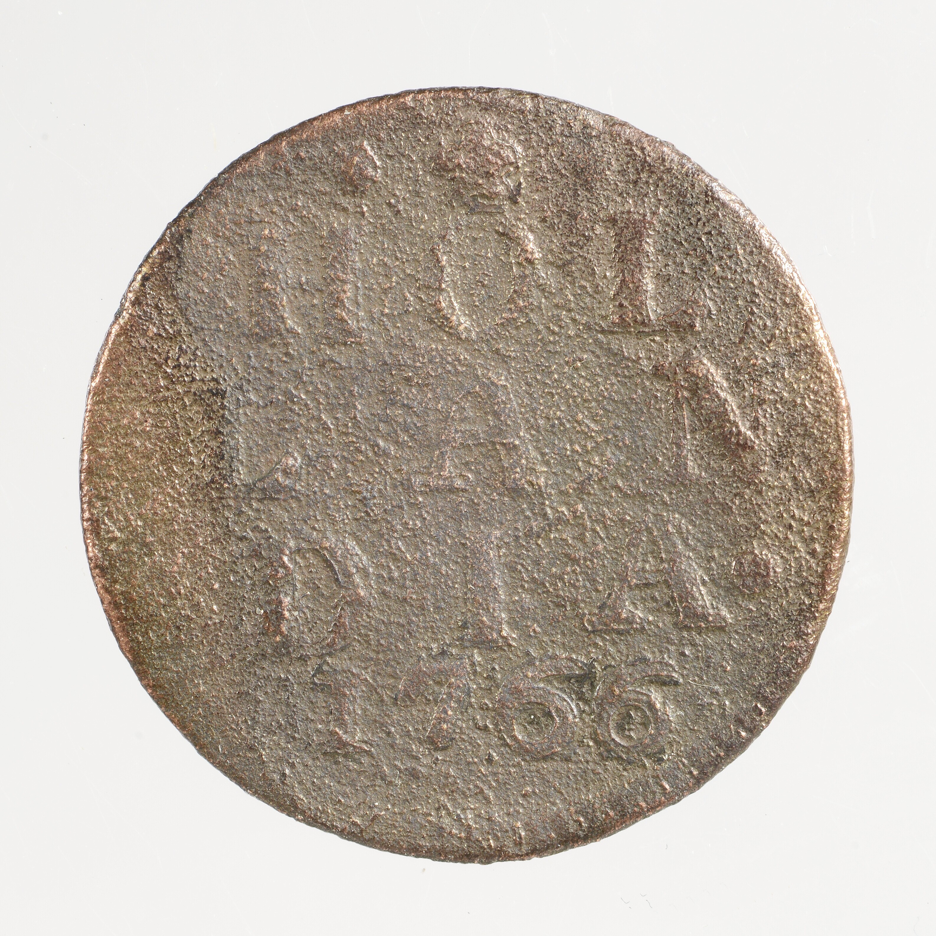 Duit; Holland Provincie (1581-1795); vz.: in vijf regels: •(rozet)• / HOL / LAN / DIA• / 1766; kz.: klimmende leeuw naar links met vrijheidshoed en een lans binnen de Hollandse tuin; muntplaats: Dordrecht; gewicht: 2.55 gram