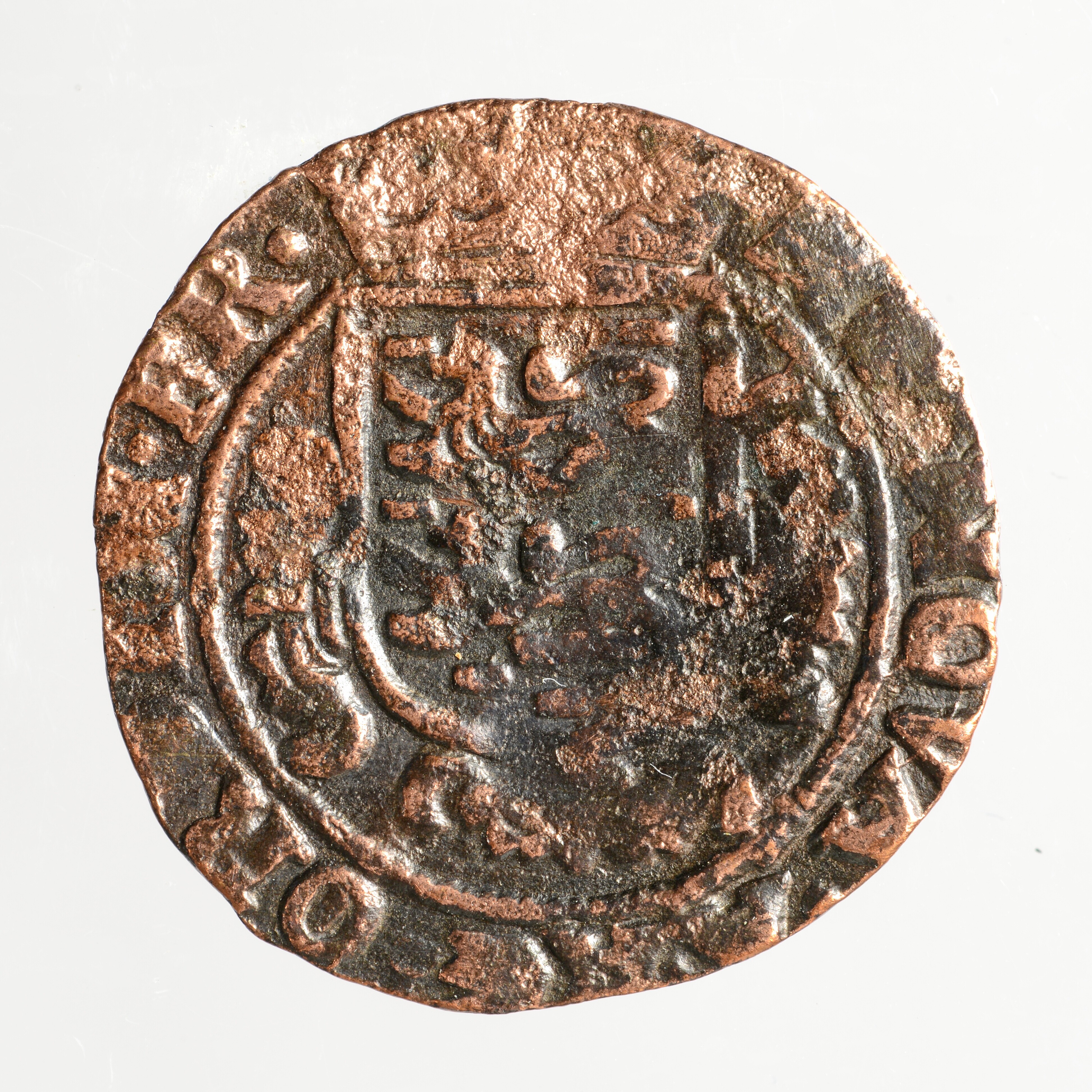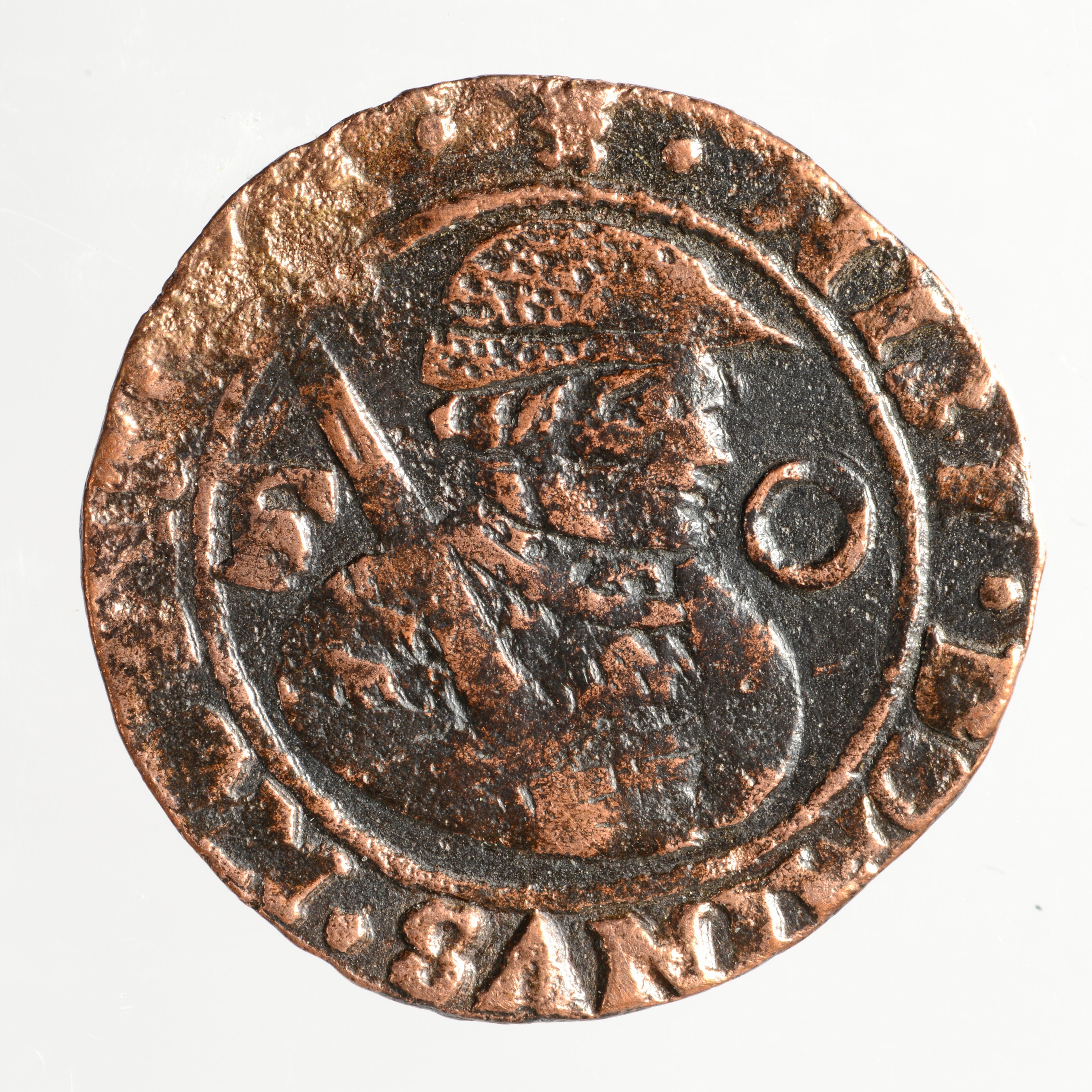 Oord; Friesland Provincie (1581-1795); vz.: buste van een Saksische edelman met geschouderd zwaard, aan weerszijden de letters F en O, met omschrift (leeuw) • NISI • DOMINVS • NOBISCVM •; kz.: gekroond en versierd wapenschild van Friesland, met omschrift MO • NOVA • ARG • ORDIN • FR •; muntplaats: Leeuwarden; gewicht: 2.54 gram