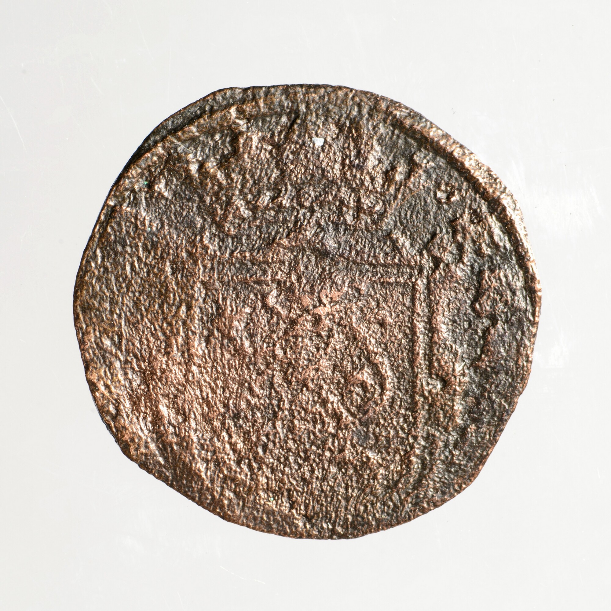 Duit; stad Batenburg; vz..: tulpkrans met in drie regels BAT / ENBVR / GVM; kz.: binnen een gedeeltelijke tulpkrans gekroond wapenschild met een klauwende leeuw naar links; gewicht: 1.45 gram