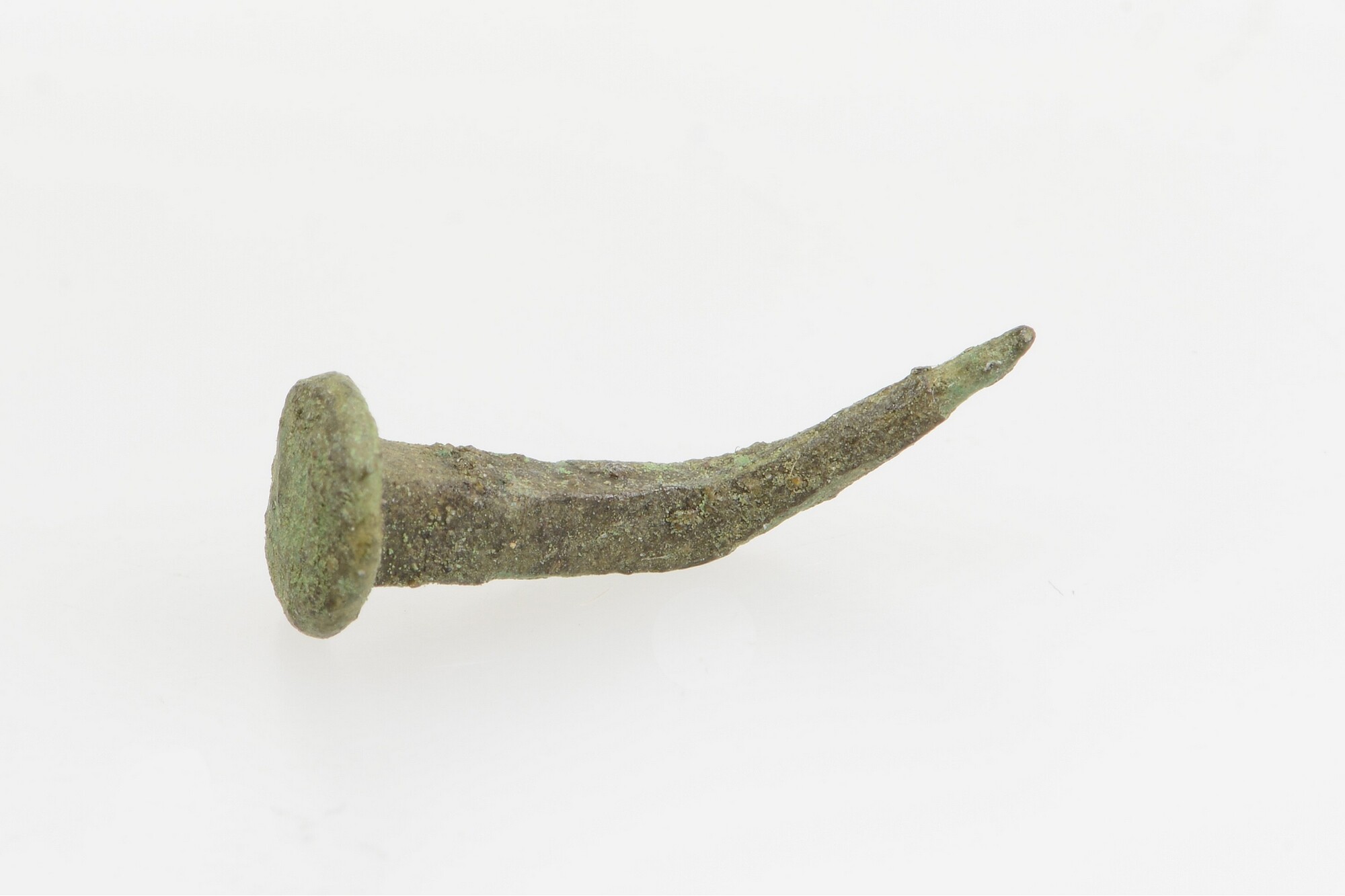 Siernagel; vierkant in doorsnede; platte kop; verbogen; vondstomstandigheden: troffelen, 11-9-2015