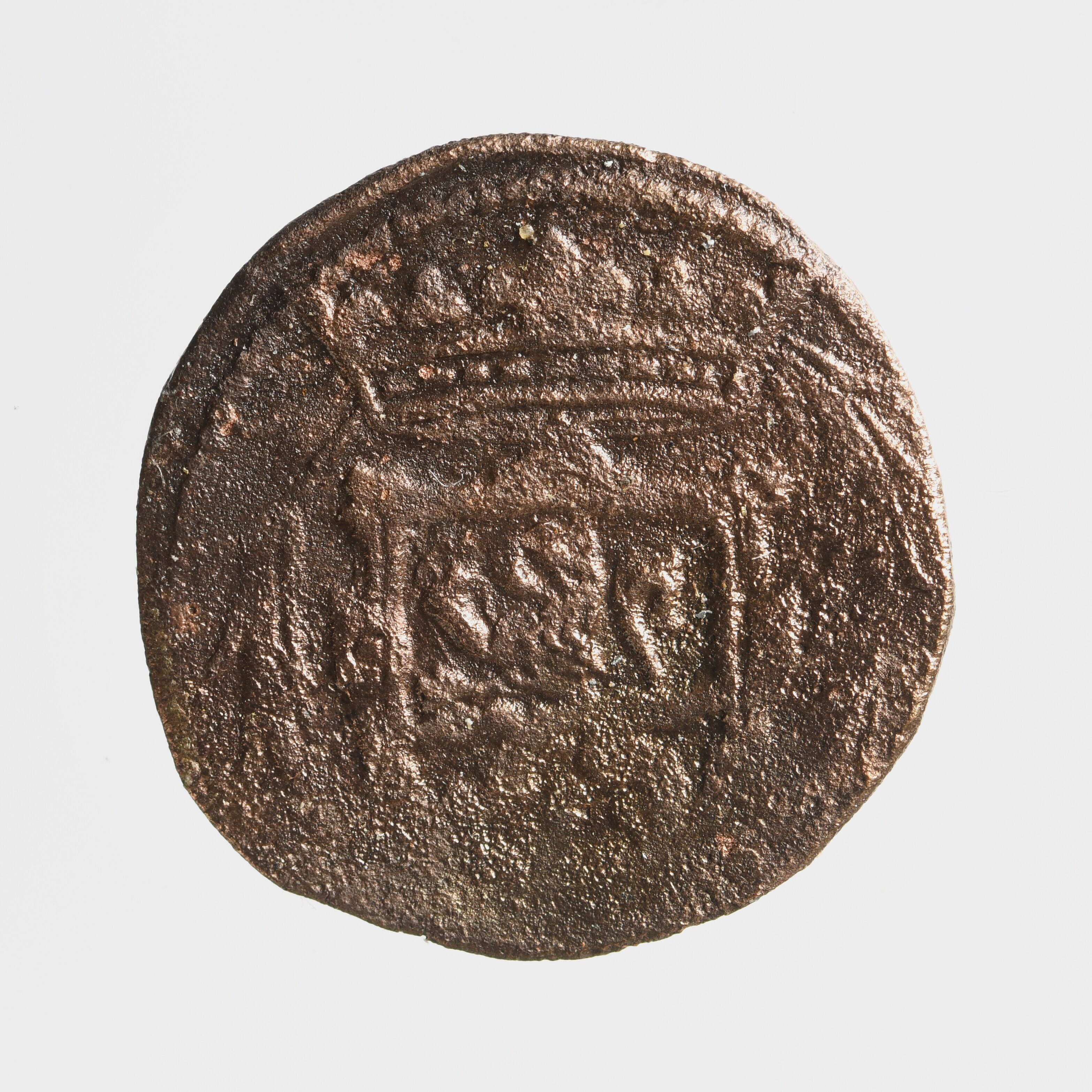 Duit; Overijssel Provincie (1581-1795); vz.: tulpkrans met daarbinnen in vier regels: TR^AS / ISVLA / •NIA[•] / 1628; kz.: gekroond en versierd wapenschild van Overijssel in een tulpkrans; muntplaats: Kampen; gewicht: 1.97 gram