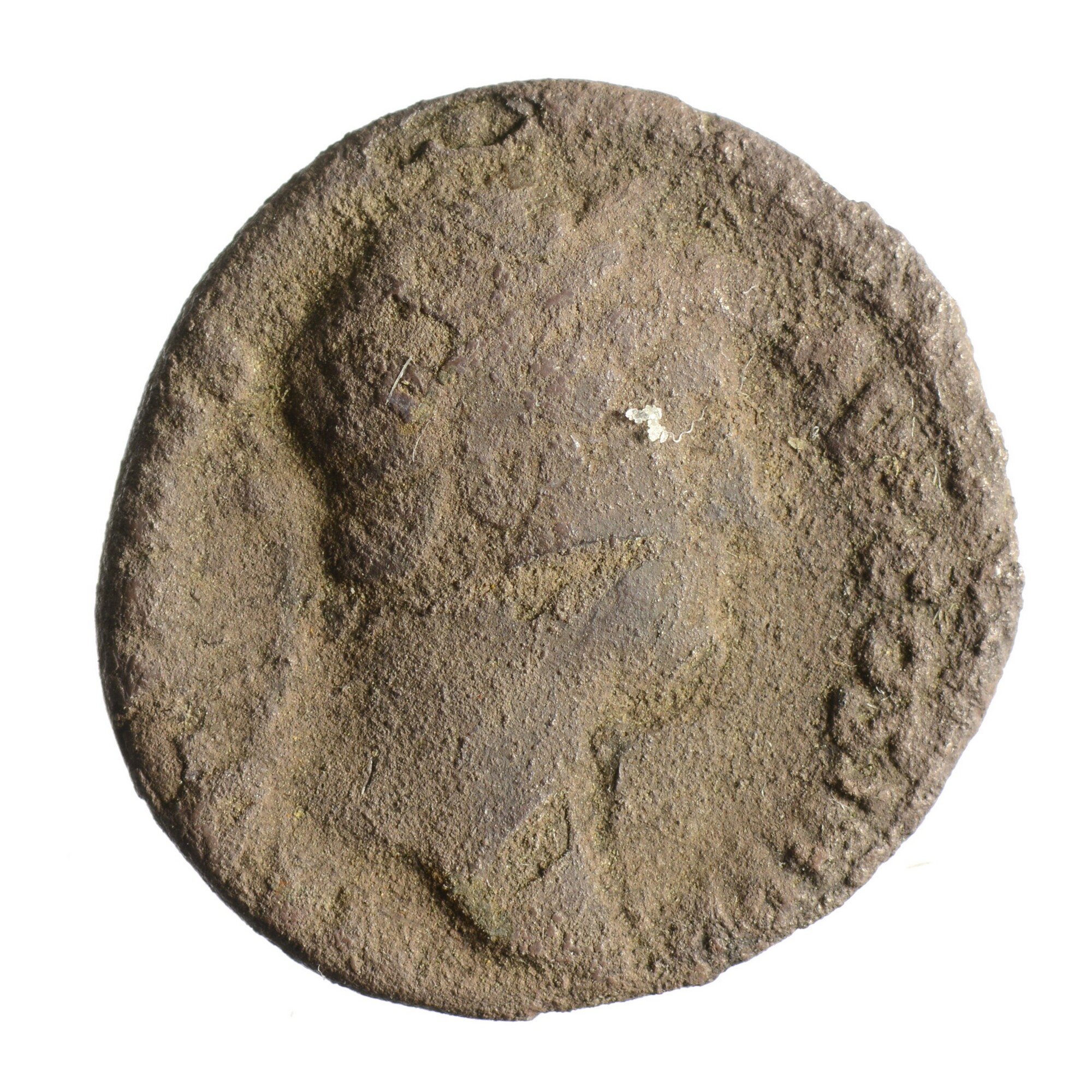 Denarius; Romeinse Keizerrijk; Hadrianus (117-138); vz.: hoofd van Hadrianus naar rechts, [HADRIANVS] AVG COS III P P; kz.: staande Fortuna naar links met roer en cornucopia; gewicht: 3 gram; herkomst: onbekend; vindplaats: Texel, De Waal, Polderweg