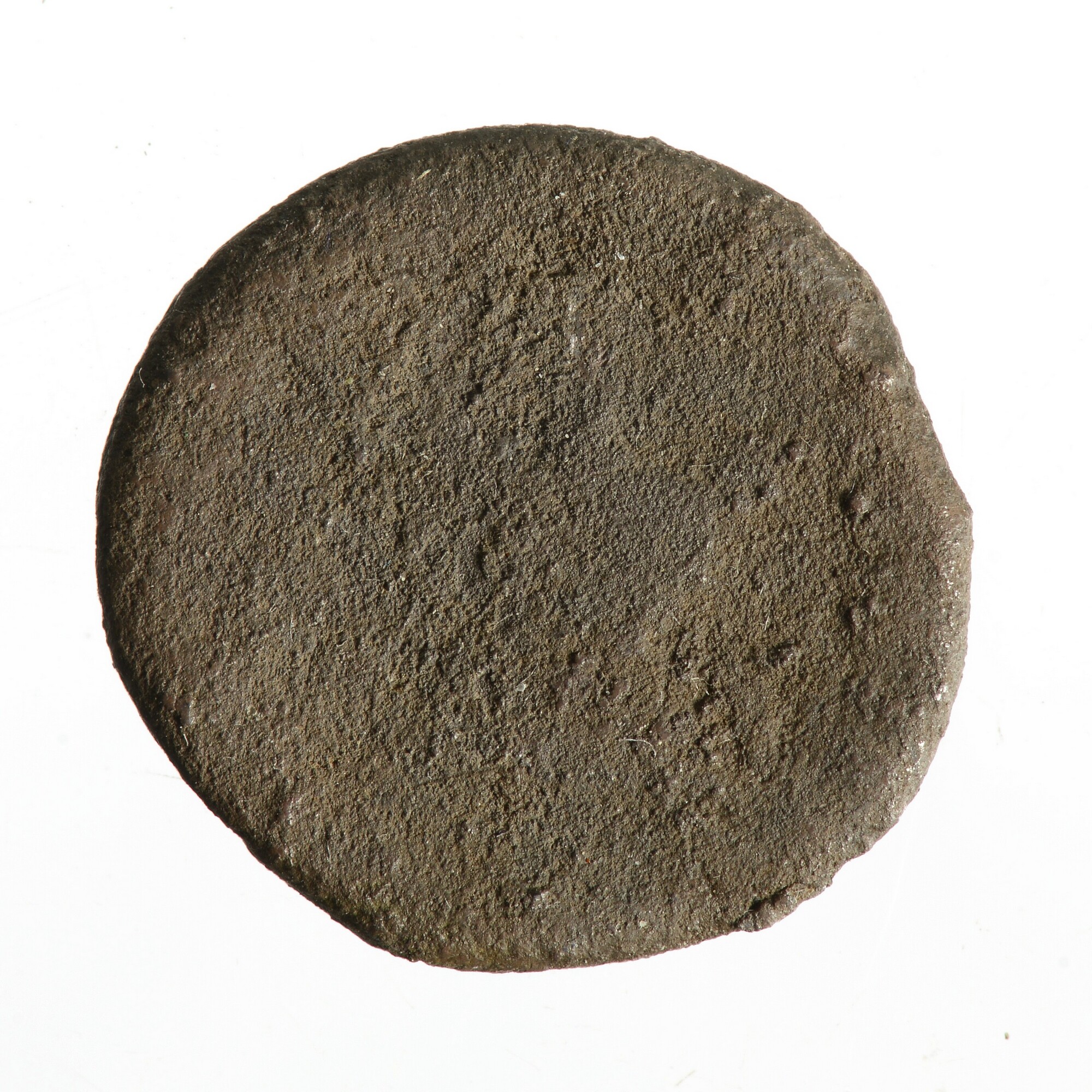 Denarius; Romeinse Keizerrijk; ondetermineerbaar; gewicht: 3.0 gram; geplateerd geweest?; herkomst: onbekend; vindplaats: Texel, De Waal, Polderweg