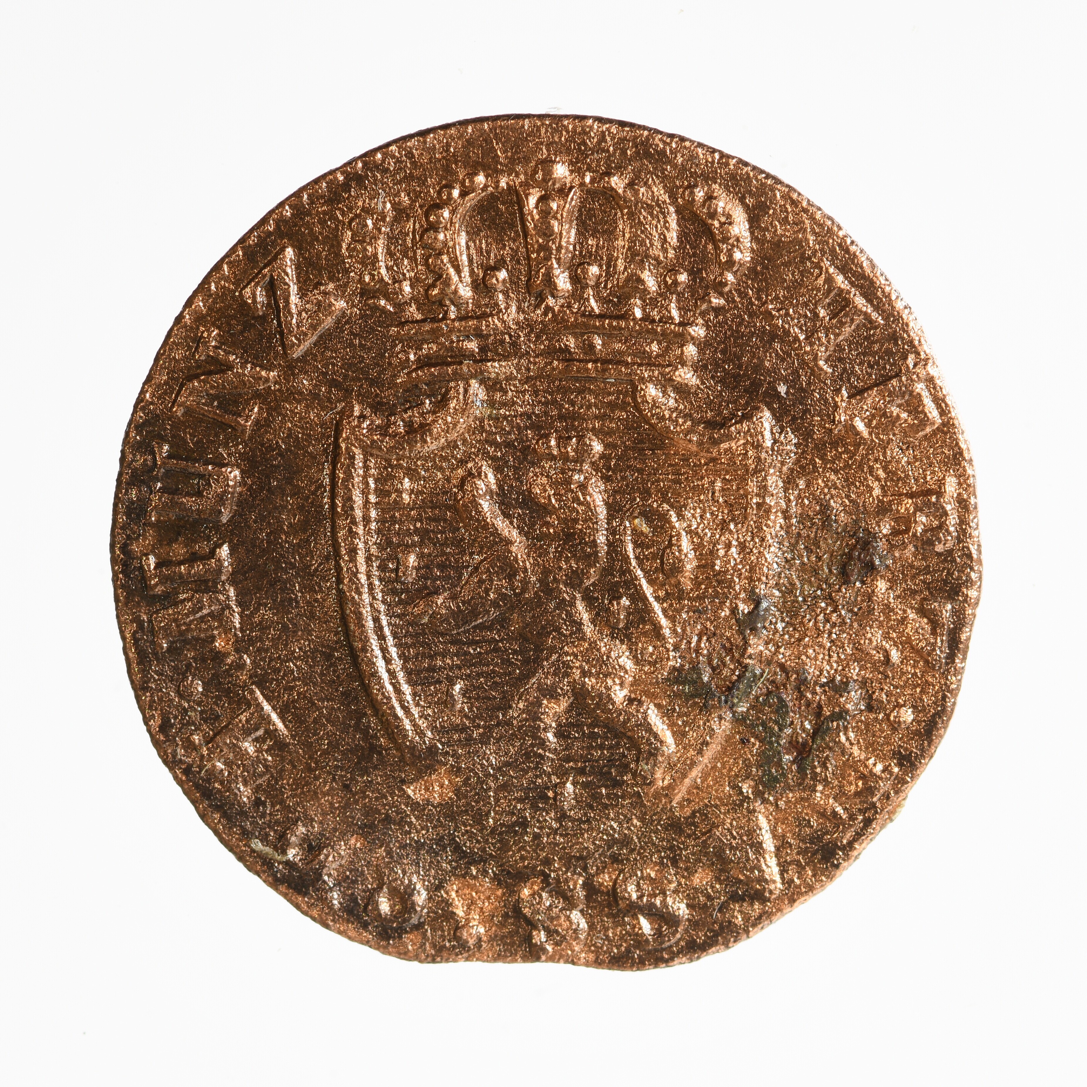 Kwart Kreuzer; Hertogdom Nassau (1806-1866); Wilhelm I (1816-1839); vz.: binnen lauwerkrans in vier regels: 1/4 / KREU= / [=]ZER / 182[x]; kz.: gekroond wapenschild met omschrift: HERZ:NASS:SCH:MUNZ; gewicht: 1.07 gram