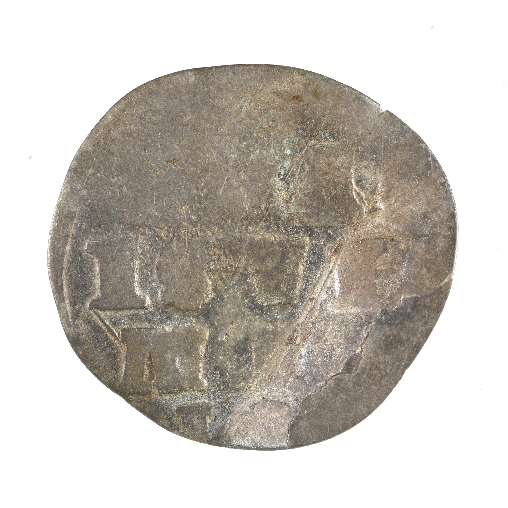 Dubbele stuiver; Overijssel Provincie (1581-1795); vz.: in vier regels: [(rozet) / T]RAS / ISVLA / NI[A] / [...]; kz.: vrijwel onleesbaar; gewicht: 1.01 gram