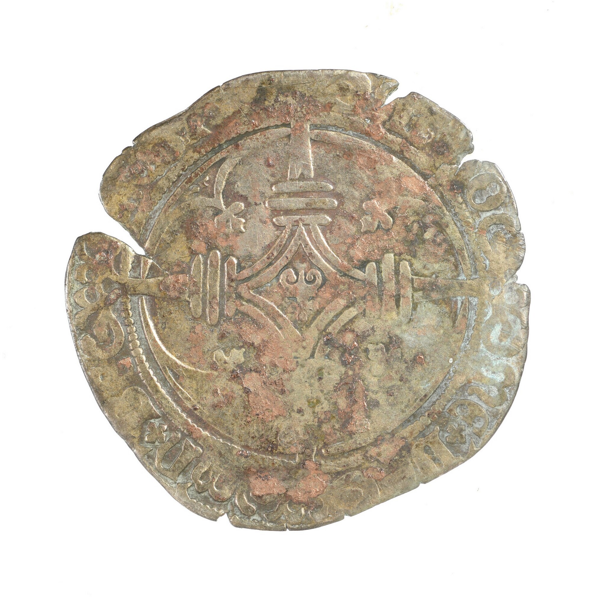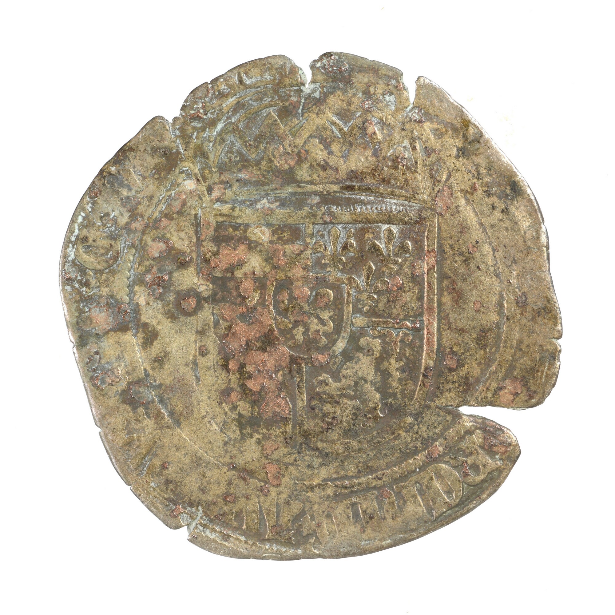 Stuiver; Vlaanderen Graafschap (862-1795); Filips de Schone (1482-1506); vz.: gekroond wapenschild van Oostenrijk-Bourgondië, omschrift: [PHS DE GRA A]RCHID AV[ST DVX B G CO NA]; kz.: kruis in vierpas met muntteken vuurslag in het centrum, omschrift: [SIT NO]ME DOMN BE[NEDTV]; muntplaats: Namen; gewicht: 2.48 gram