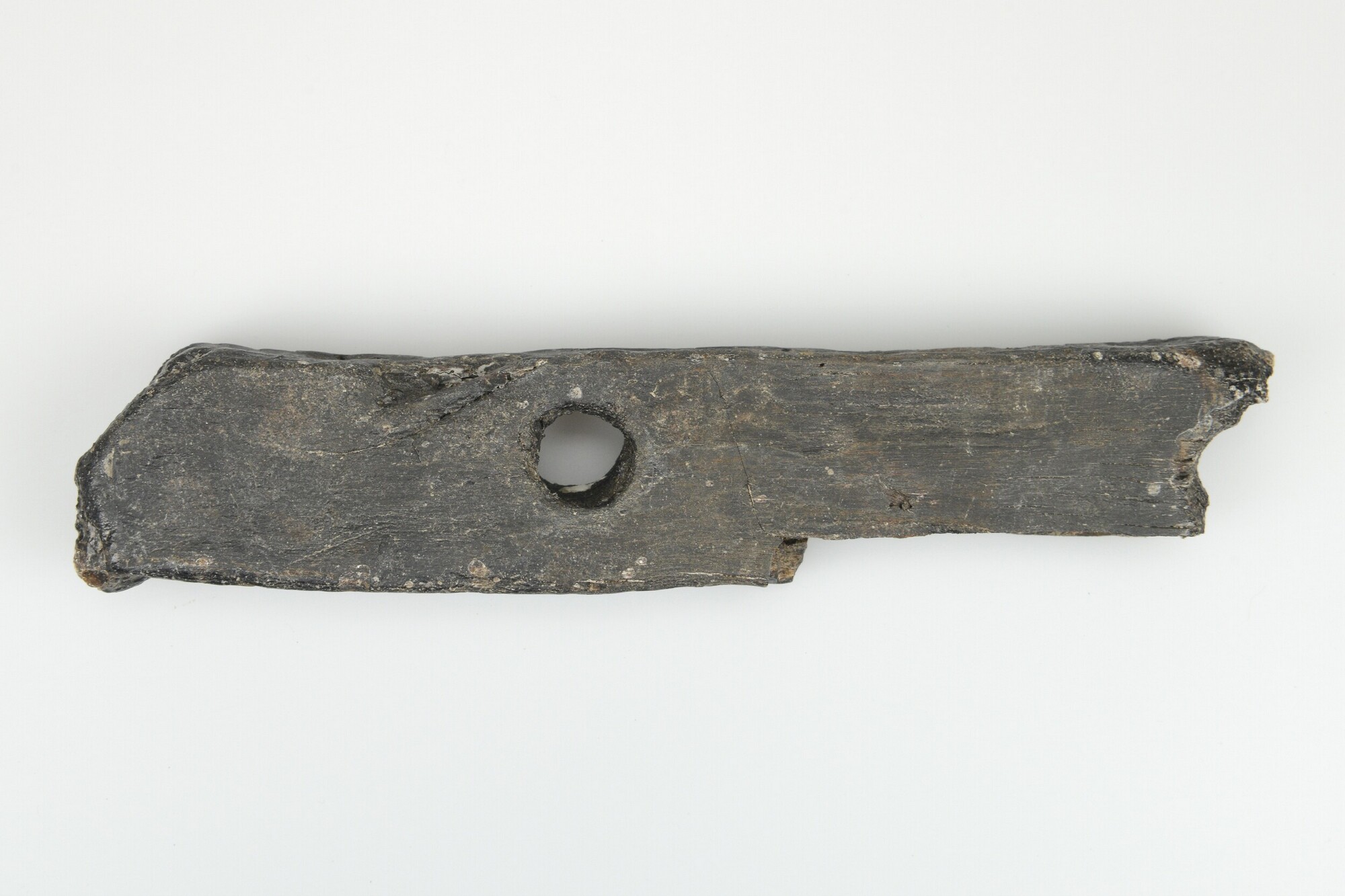Balk; fragment met gat; bewerkt