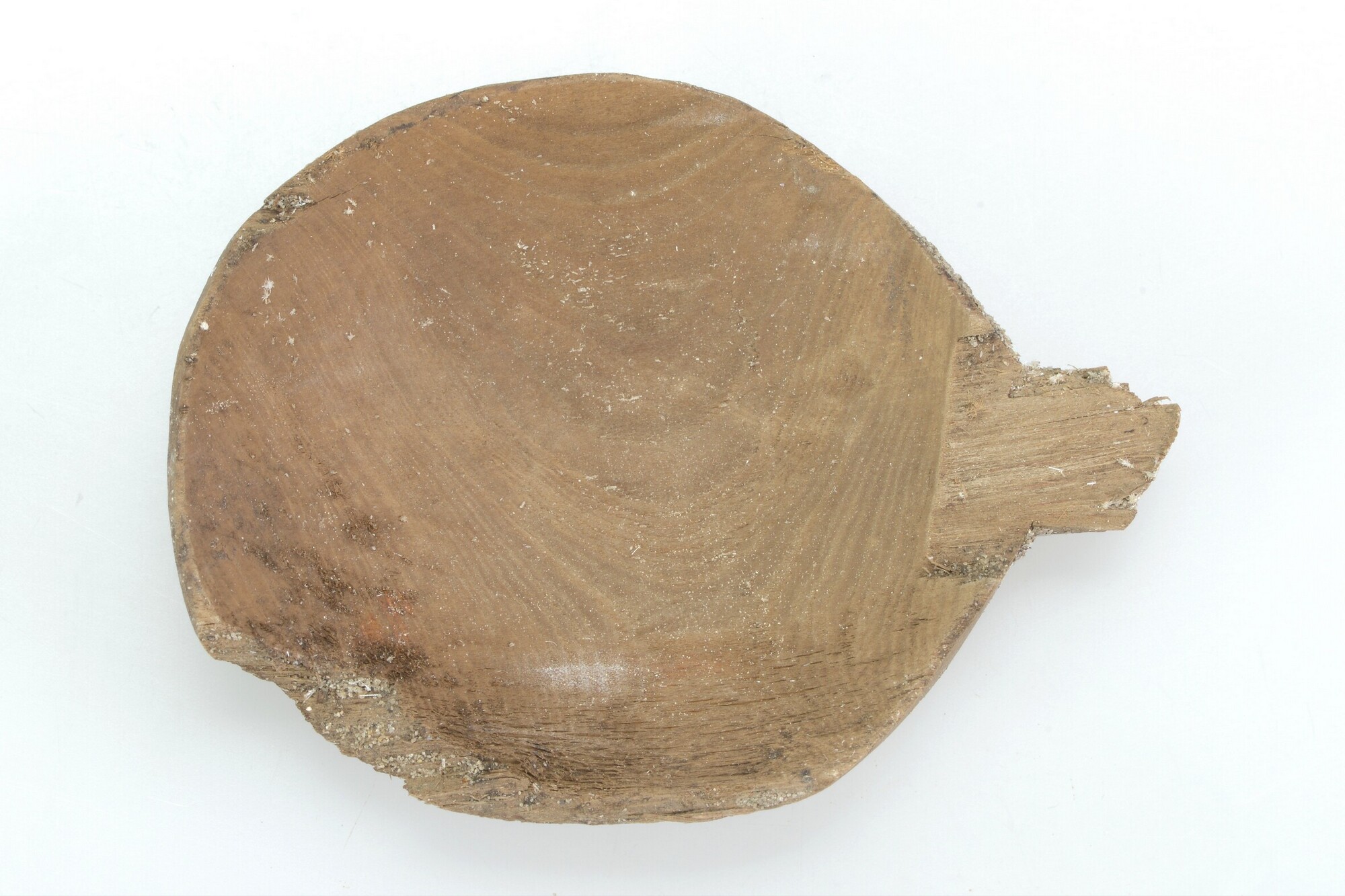 Lepel; hout; ondiepe lepelbak, steel ontbreekt