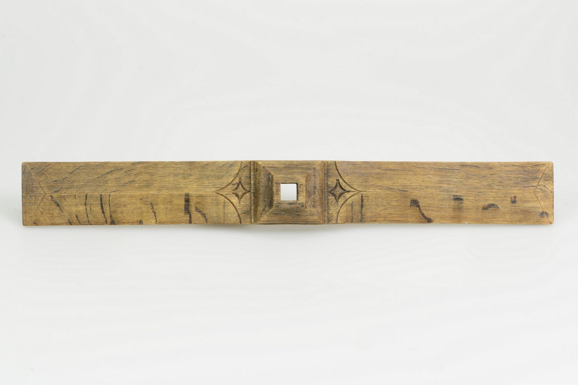 Dwarshout van een jacobsstaf; inkerfde versieringen