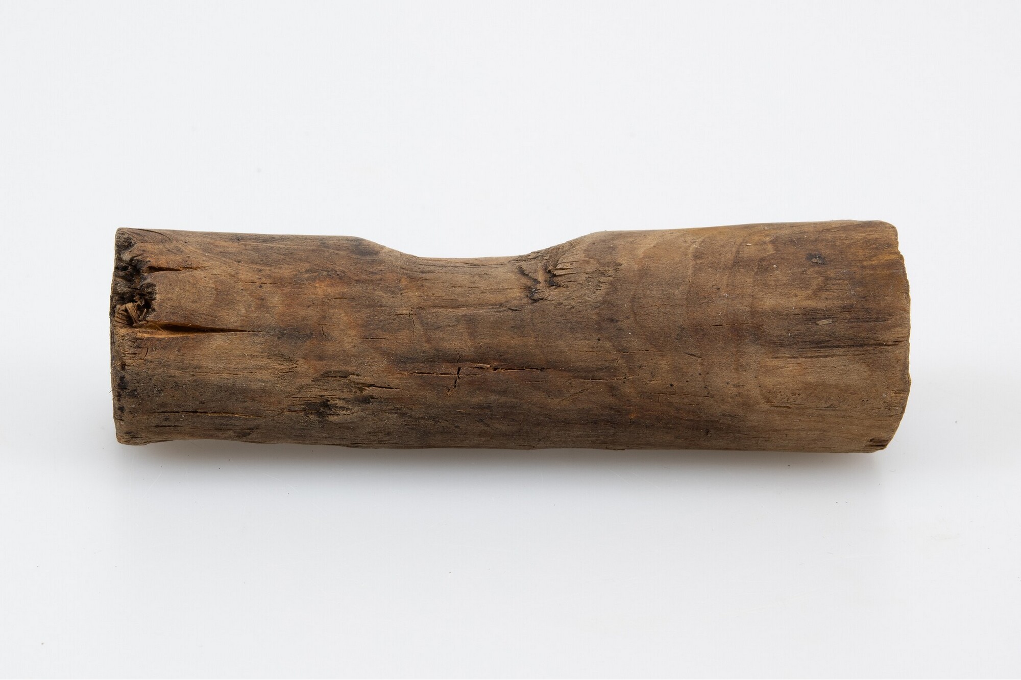 As; onderdeel van een scheepsblok; met centraal slijtsporen van een enkele schijf