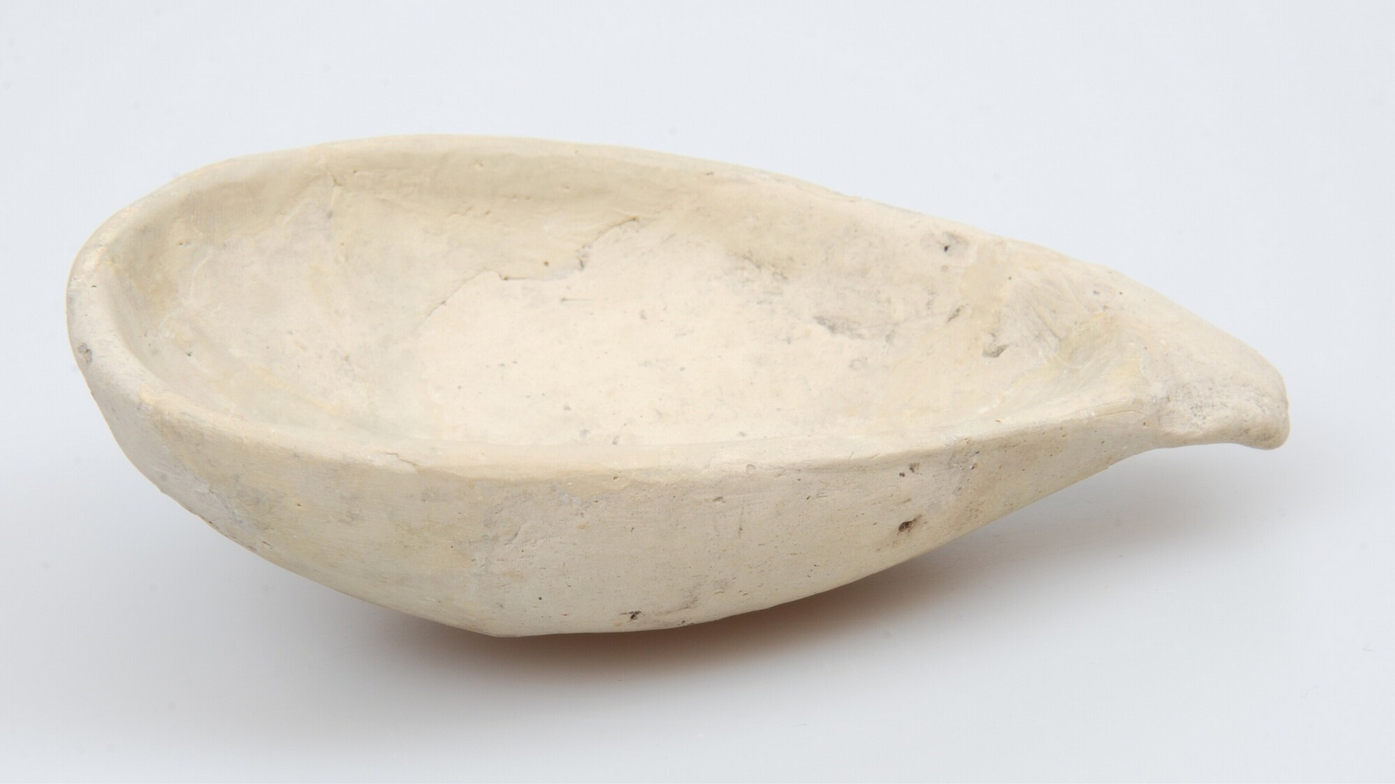 Lepel; Hoogkarspel-Jong aardewerk (late-fase); bootvormige lepel met steel; steengruismagering