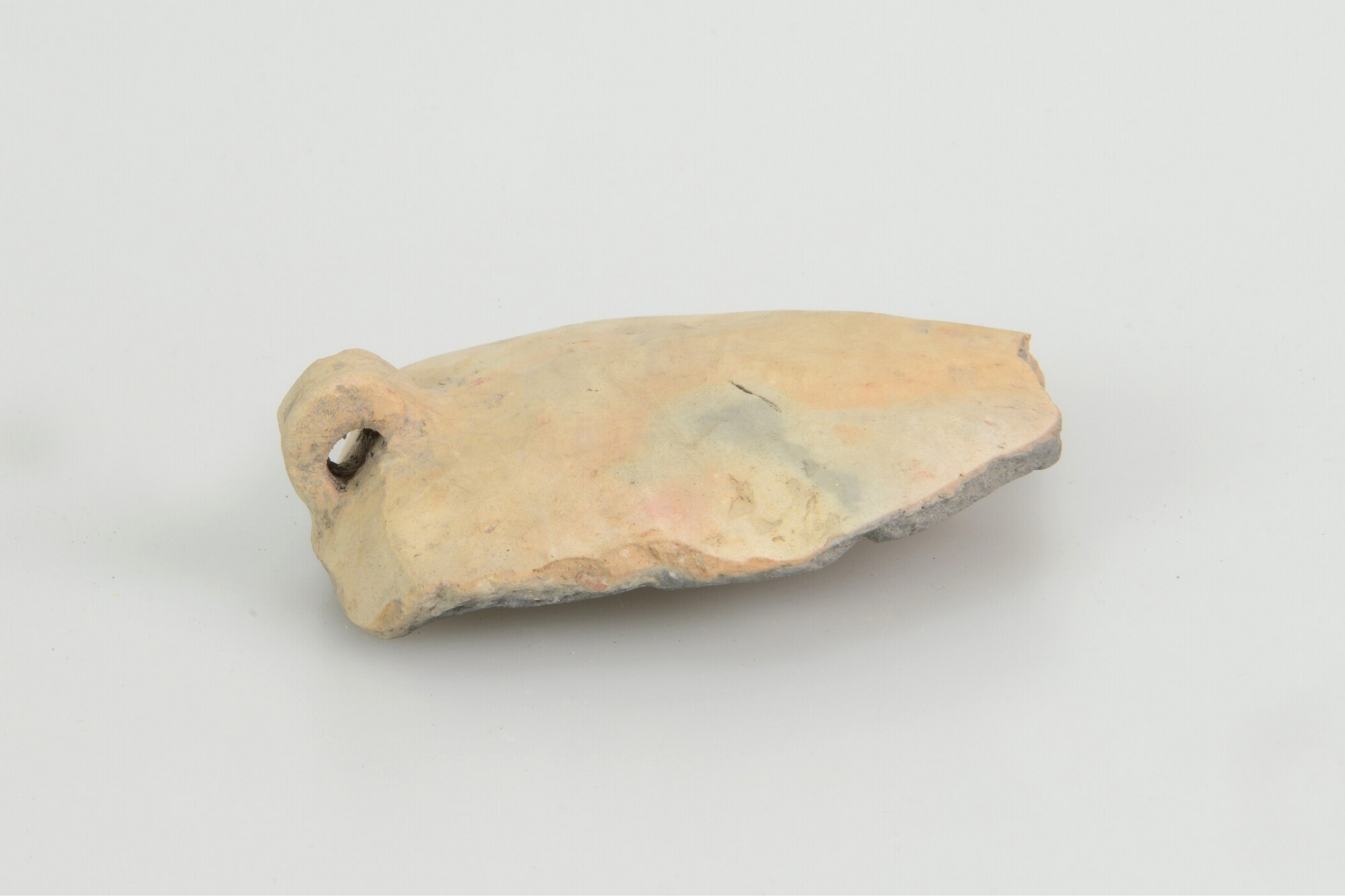 Pot; Hoogkarspel-Jong aardewerk; wandfragment met knobbeloor; buitenzijde geglad oppervlakte; fijne steengruis/potgruis magering