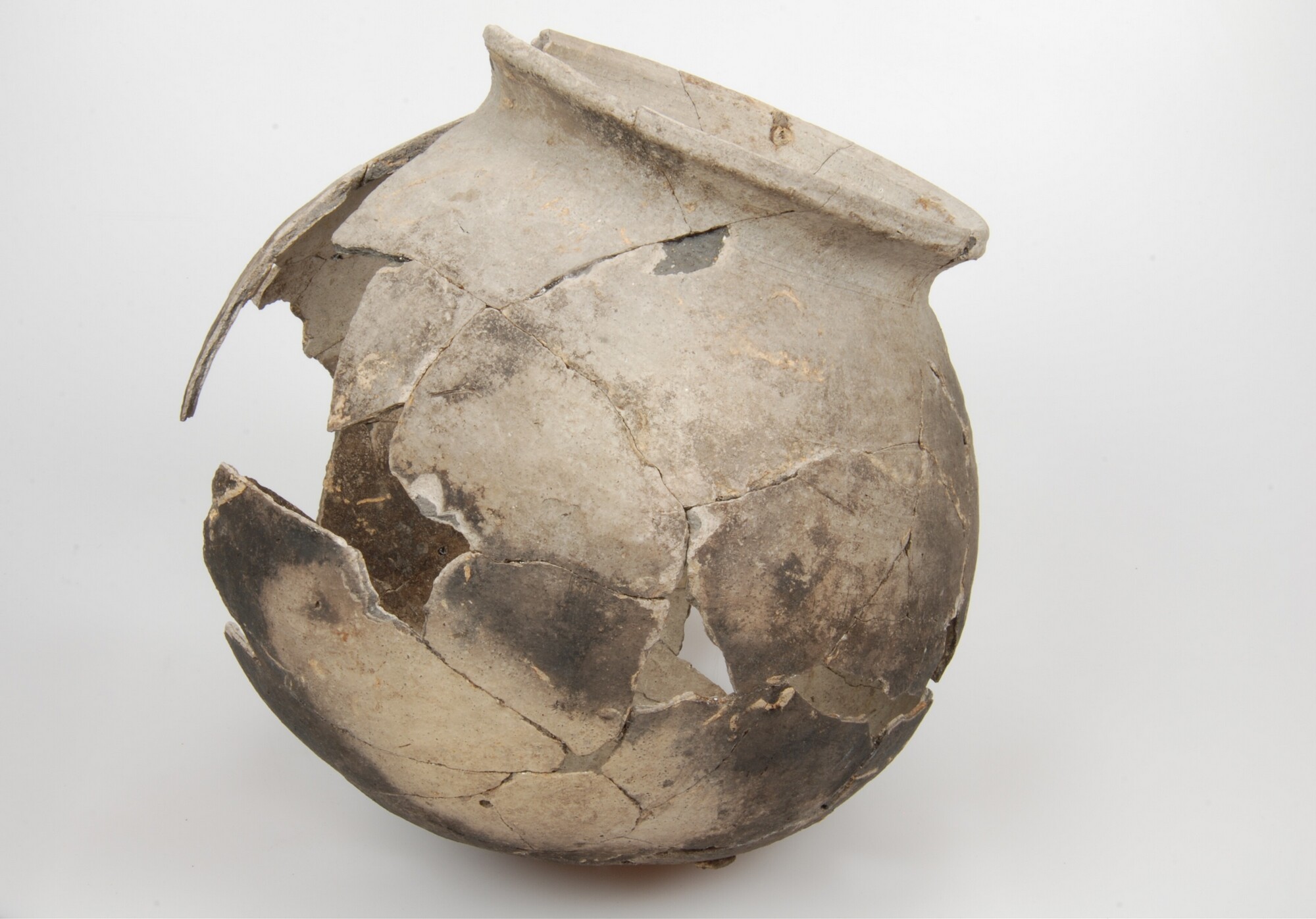 Kogelpot; kp-kog-2; kogelpot met naar binnen en naar buiten afgeschuinde rand (gefacetteerde rand); kogelpot-aardewerk