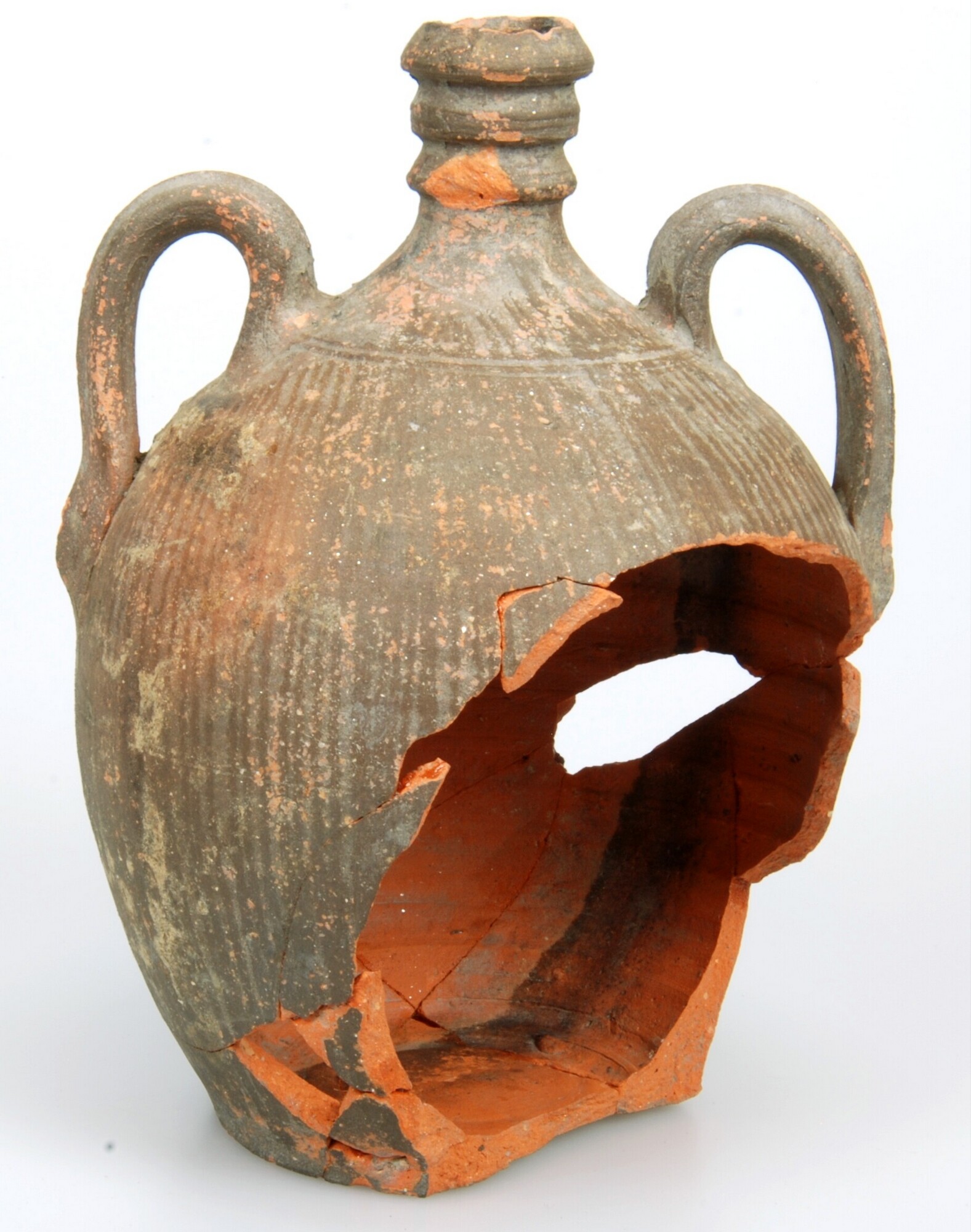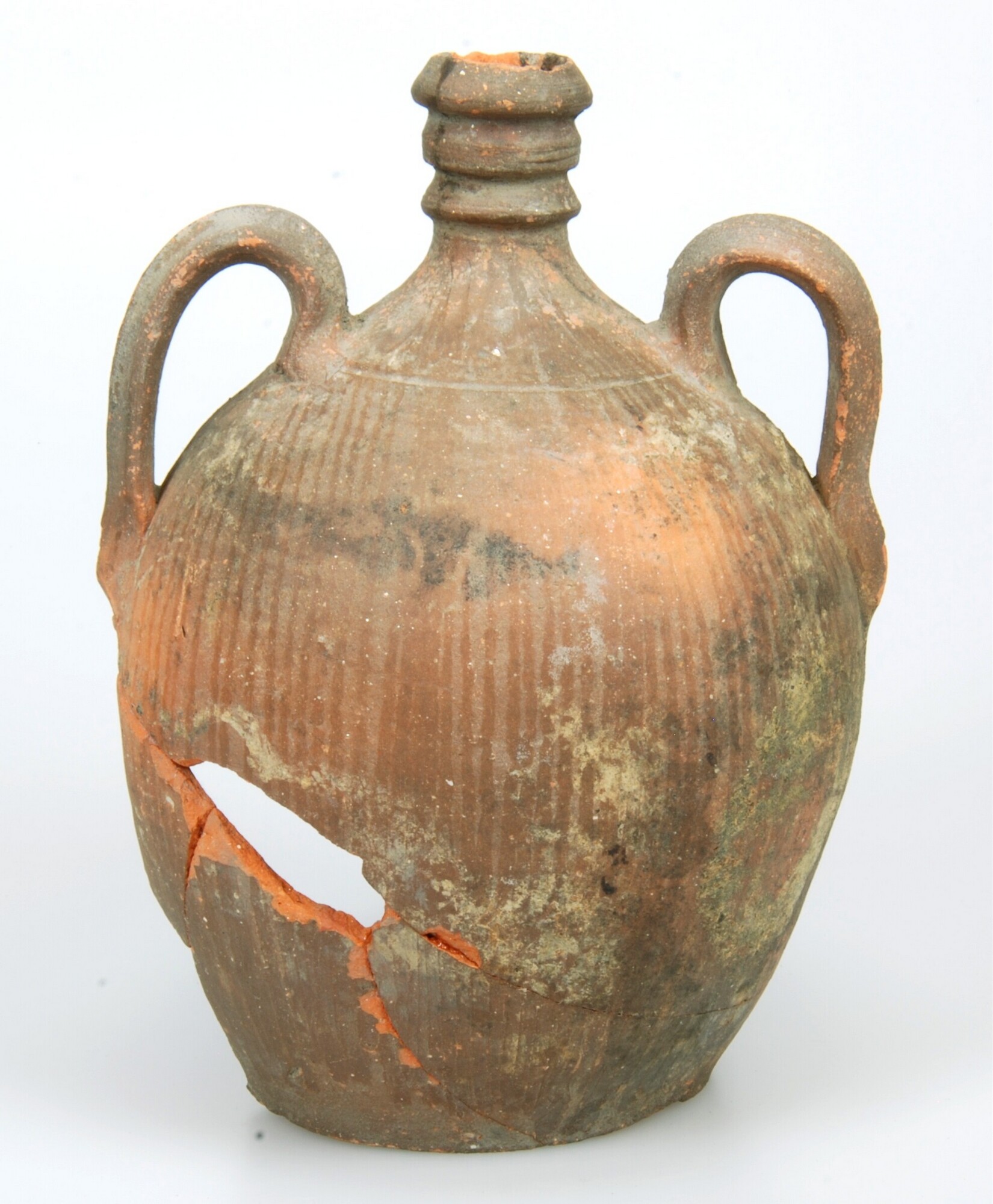 Iberische kruik; ib-kru-1; roodbakkend; afgerond dubbelconische kruik zonder hals en met verdikte rand; twee oren; standvlak; herkomst: Portugal; datum: 4-5-11