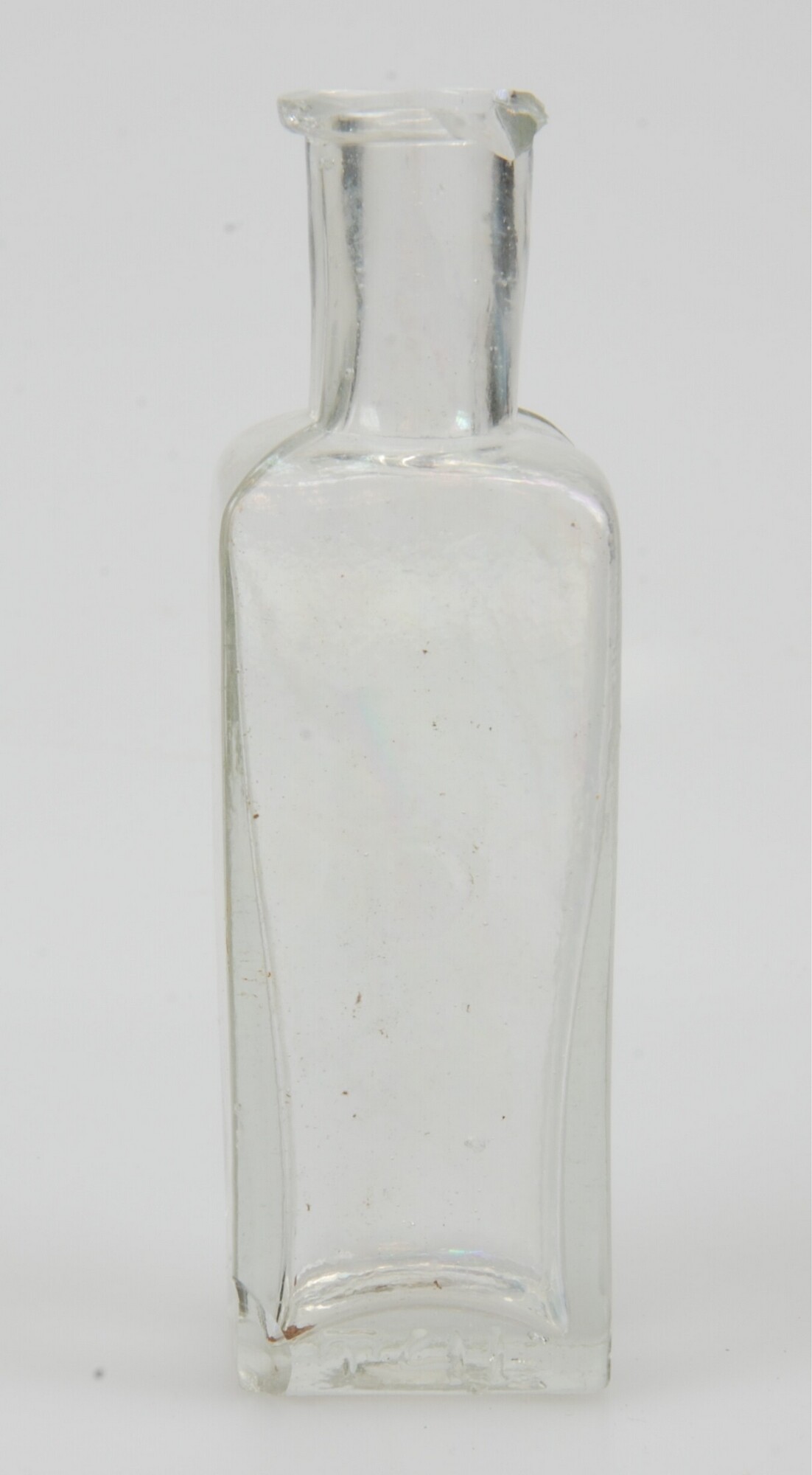 Fles; gl-fle-14; kleurloos glas; vierkante fles; standvlak; voorzijde: 'R' en 'T41'; datum: 13-5-11; vondstomstandigheden: verstoring