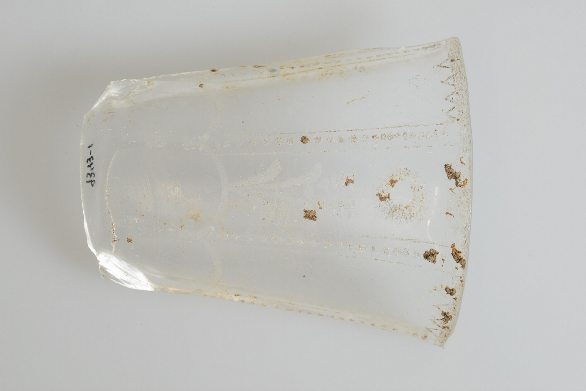 Beker; gl-bek-?; glas; kleurloos; florale motieven; herkomst: Duitsland of Bohemen