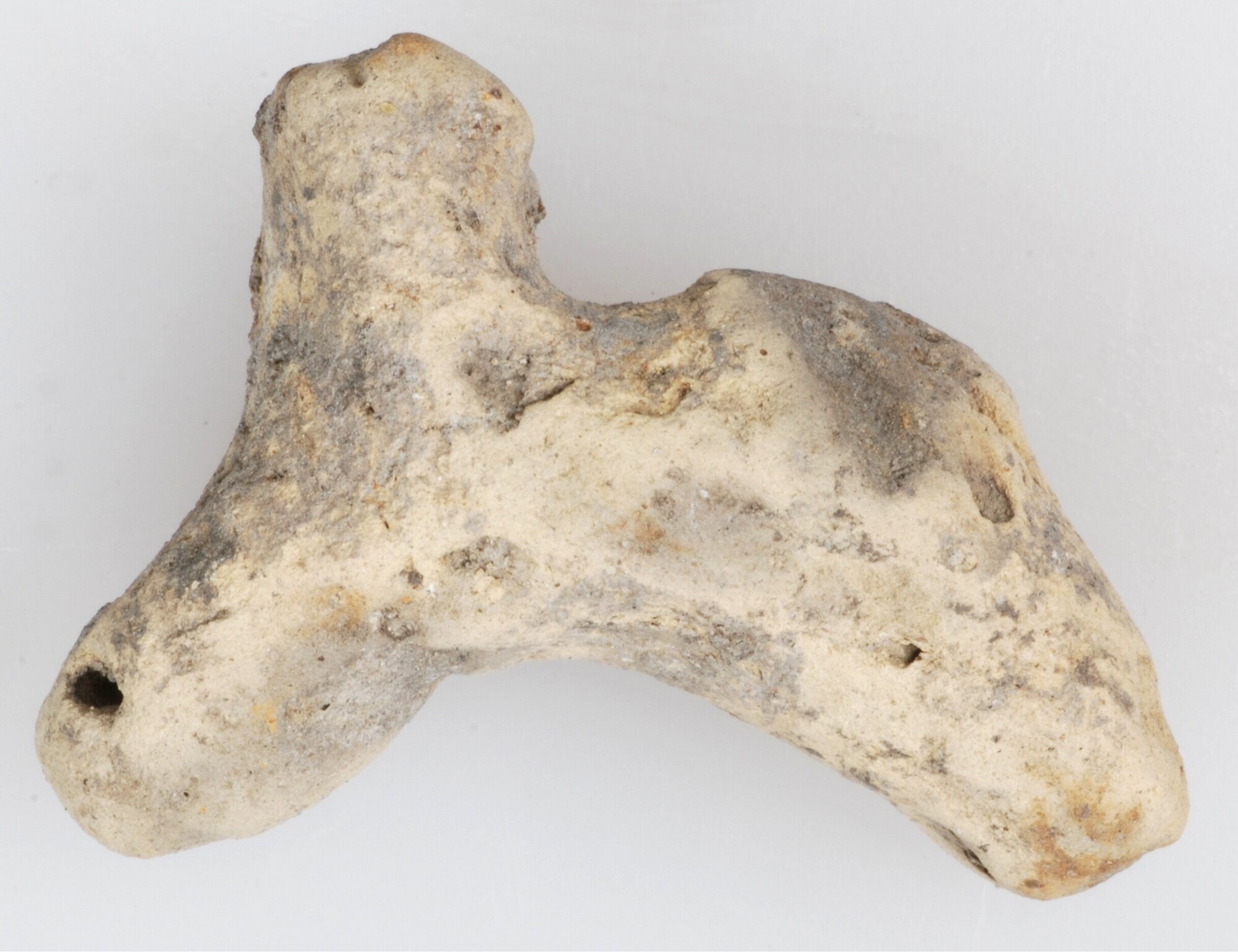 Beeld/figuur?; fragment; mogelijk dierfiguur?; lichtbruin baksel