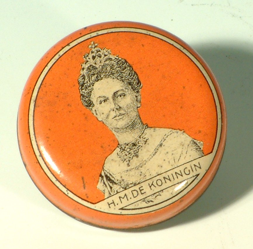 Blikje ter herinnering aan kroning van Wilhelmina, 1898, of later jubileum.