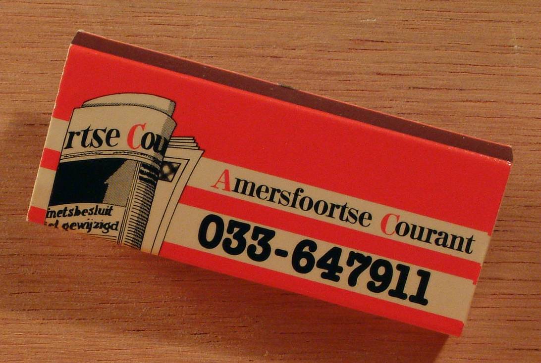 Luciferdoosje ter herinnering aan en als reclame voor de Amersfoortse Courant en het Veluws Dagblad.