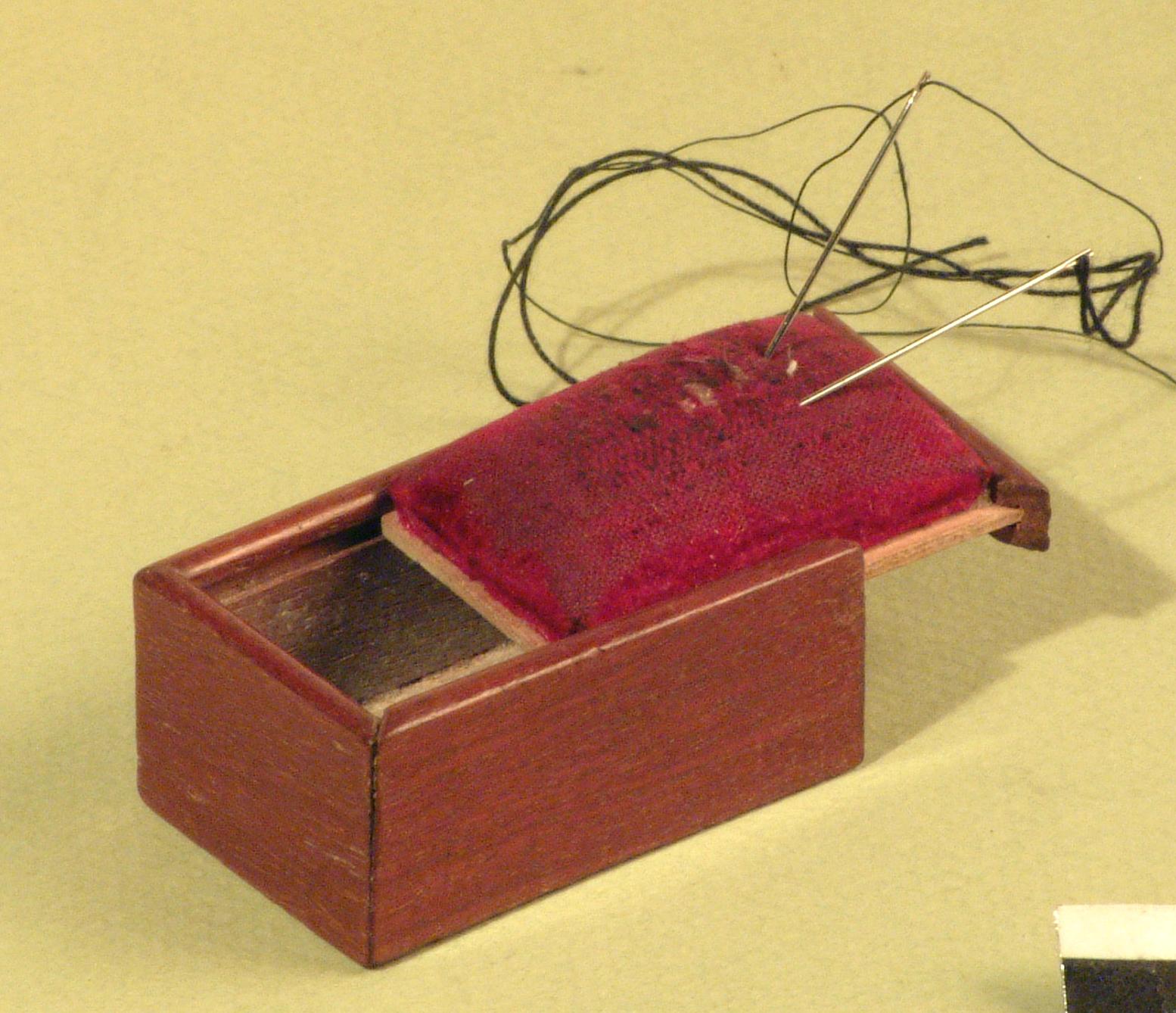 Houten speldendoosje met pluche kussentje