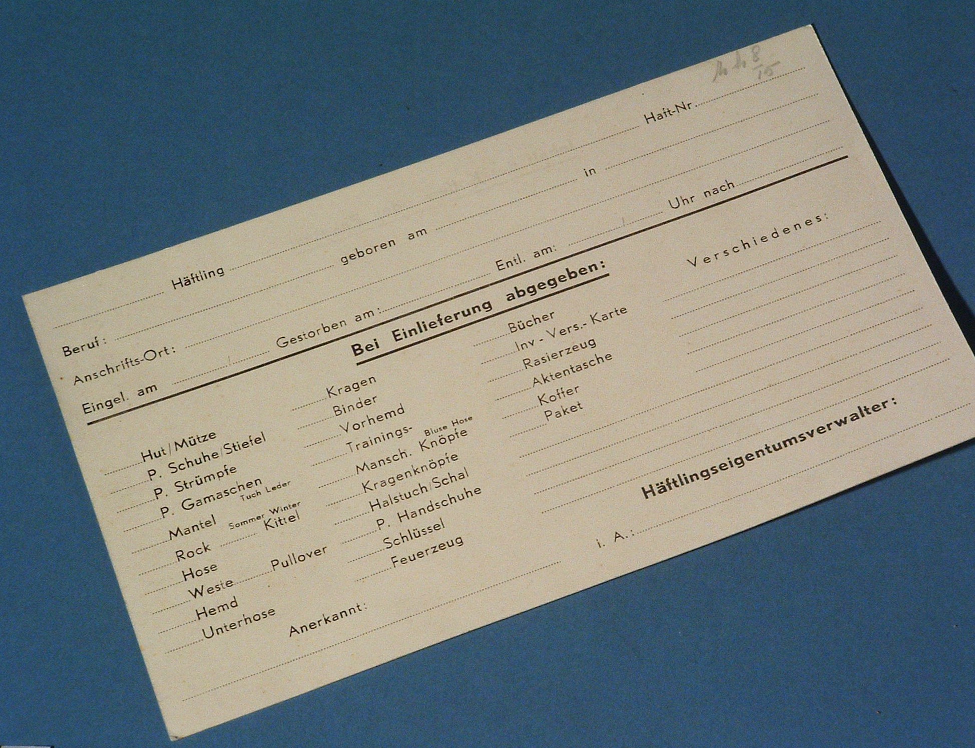 Inhalt des Koffers oder Paketes
