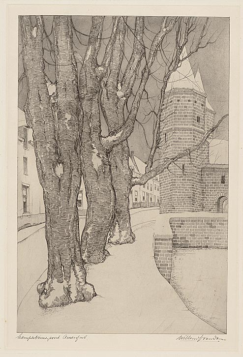 Kamperbinnenpoort met linden en sneeuw, Amersfoort