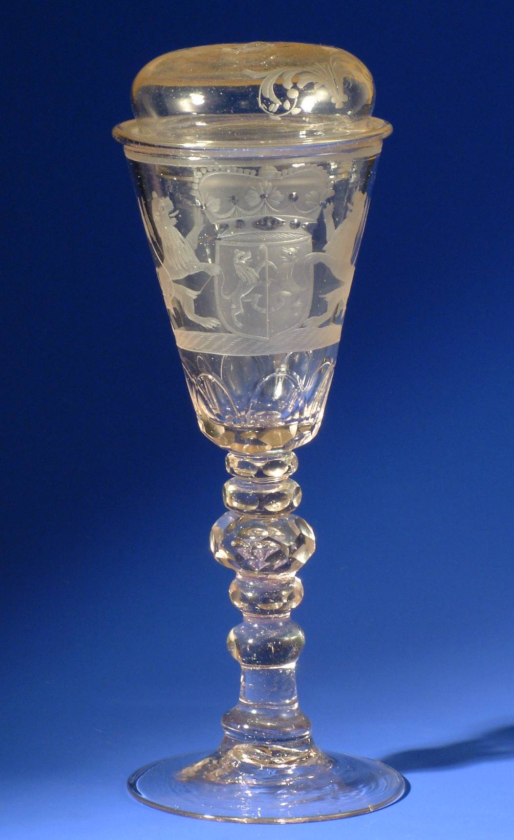 dekselbokaal met wapen van Gelderland, vastgehouden door twee leeuwen