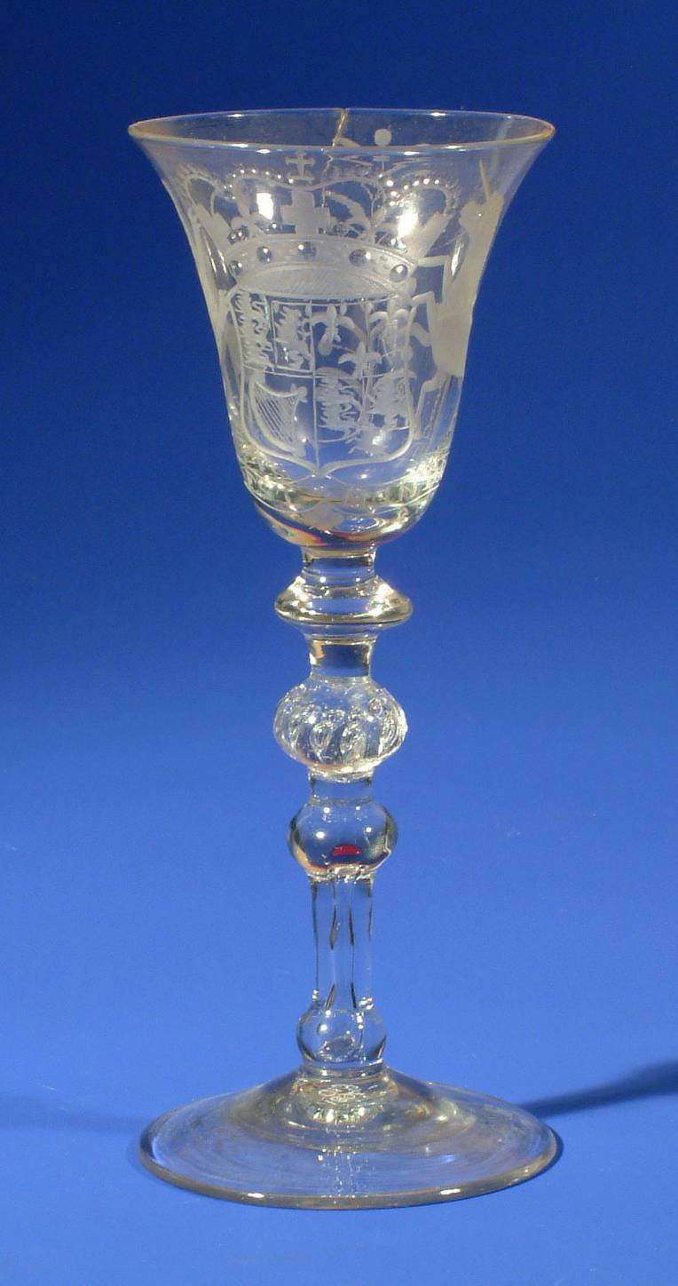 kelkglas met wapen van Engeland en tekst DIEU EST MON DROIT