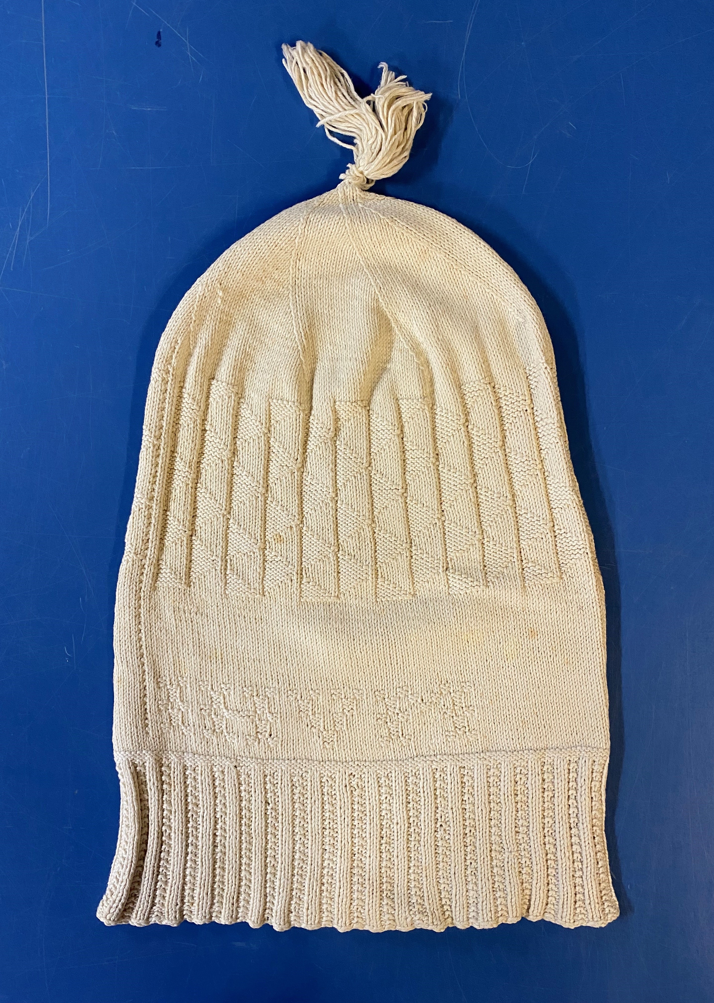Gebreide heren slaapmuts met pluim