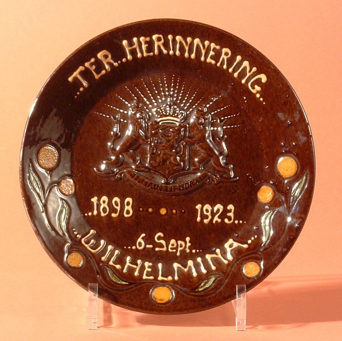 Herinneringsbord ter gelegenheid van het 25-jarig regeringsjubileum van Koningin Wilhelmina