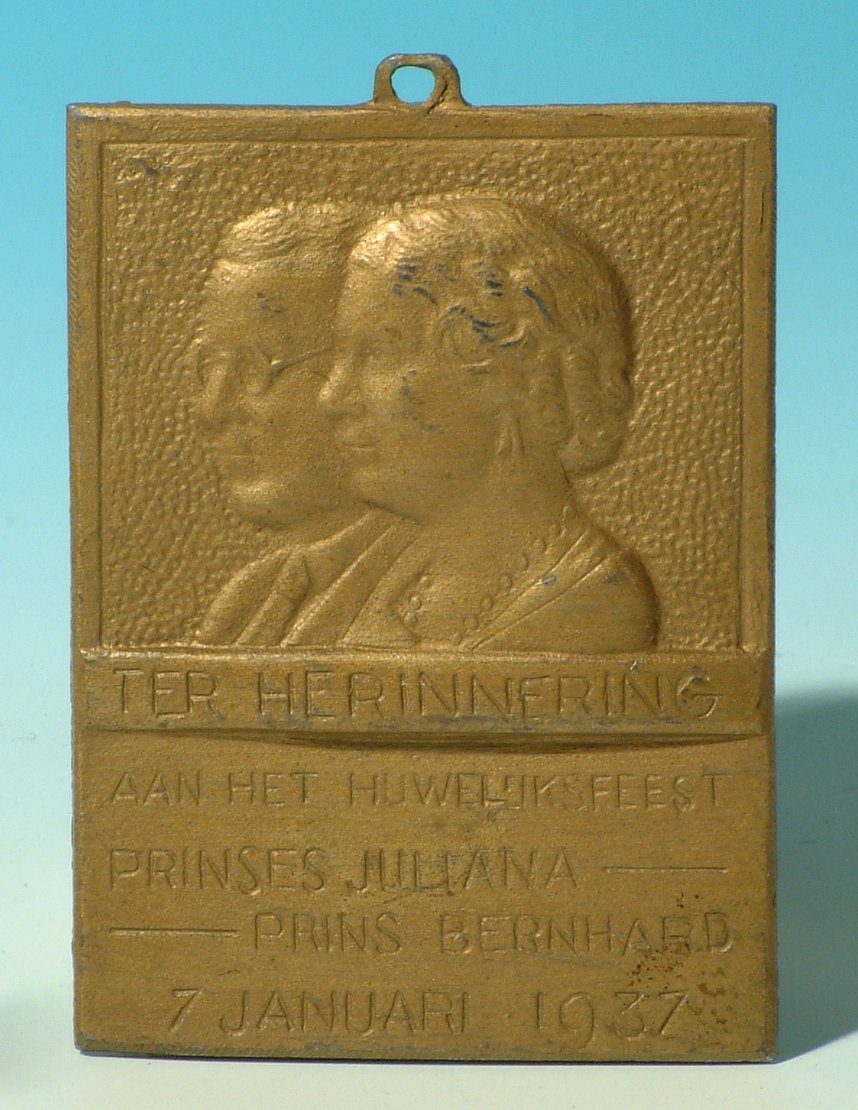 Plaquette ter ere van het huwelijk van Juliana en Bernhard, 7 januari 1937.