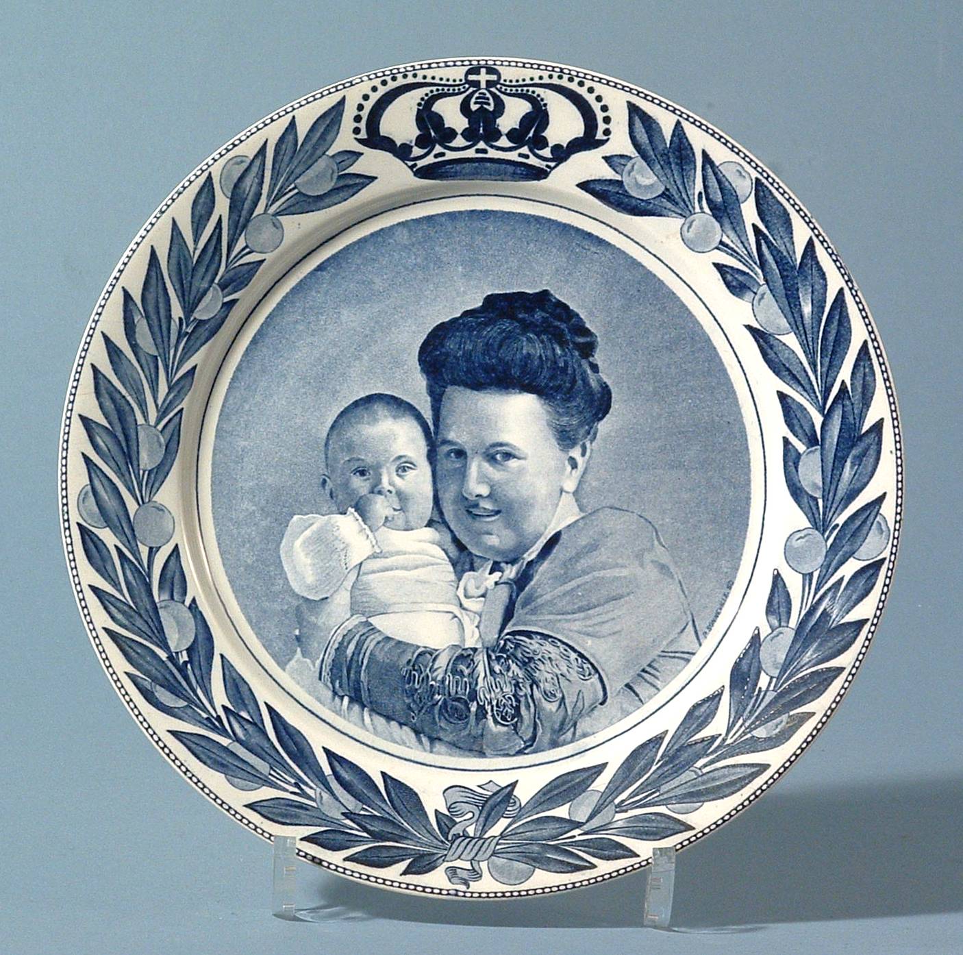Koningin Wilhelmina en prinses Juliana. Herinneringsbord ter gelegenheid van de eerste verjaardag van Juliana