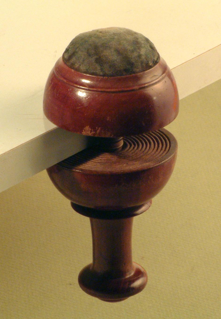 Mahoniehouten speldenkussen met groen fluweel
