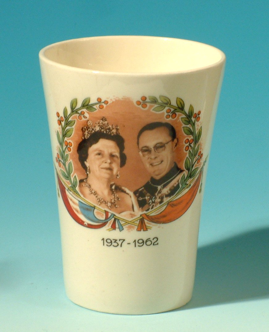 Beker ter ere van 25-jarig huwelijk van Juliana en Bernhard, 7 januari 1962.