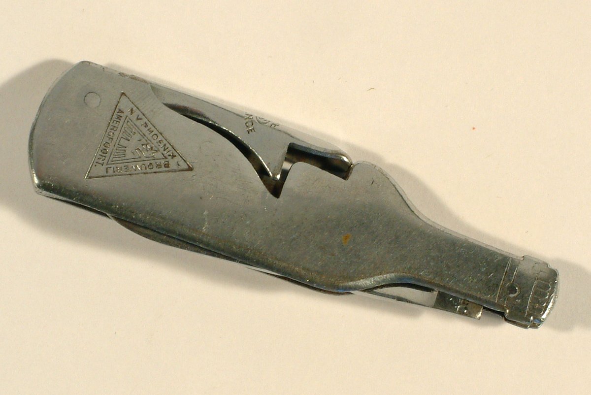Flesopener met mes, N. V. Phoenix brouwerij, met Phoenixlogo