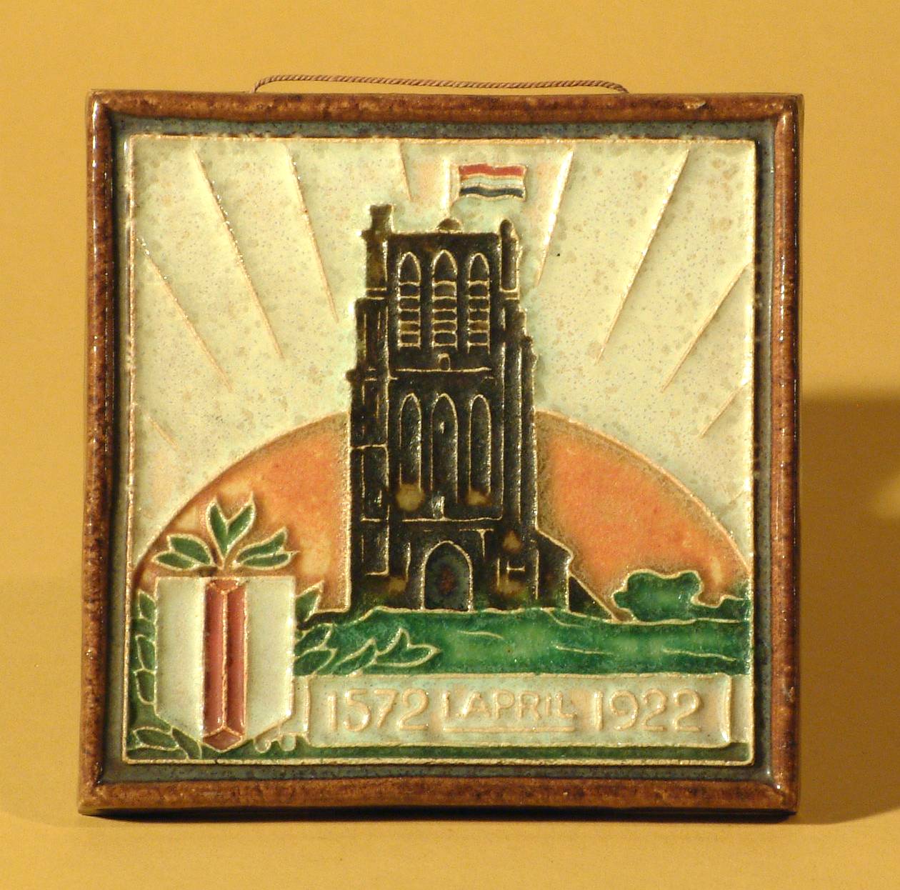 Tegel ter herinnering aan inname van Den Briel door watergeuzen 350 jaar geleden, 1 april 1922.
