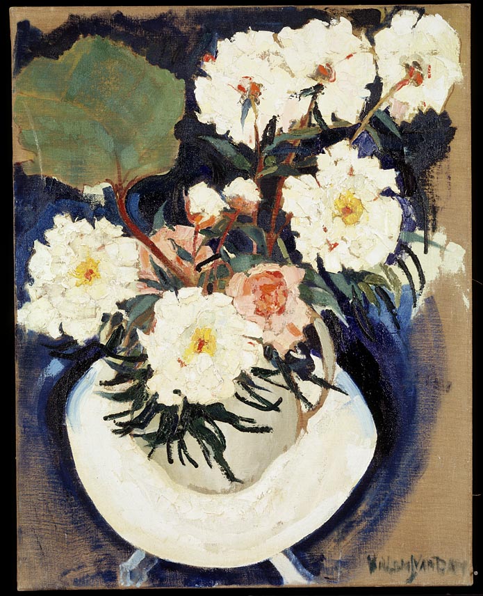 Vaas met witte en roze bloemen