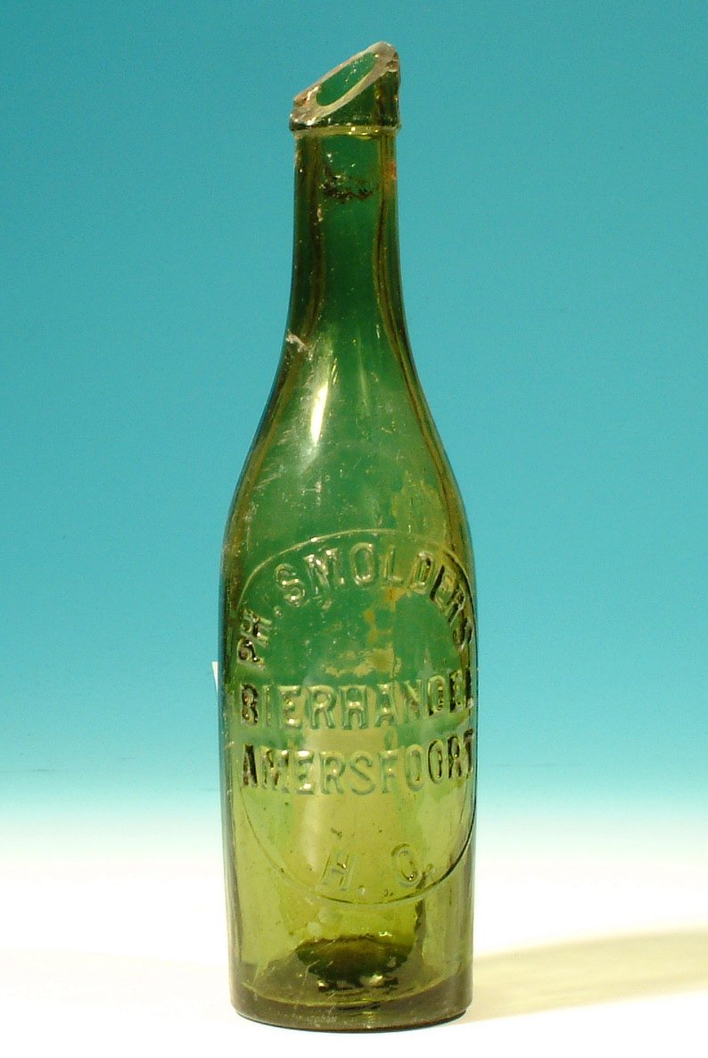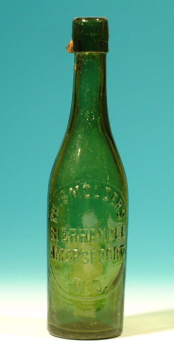 bierfles uit Amersfoort (5 exemplaren) met porceleinen stop (1 exemplaar)