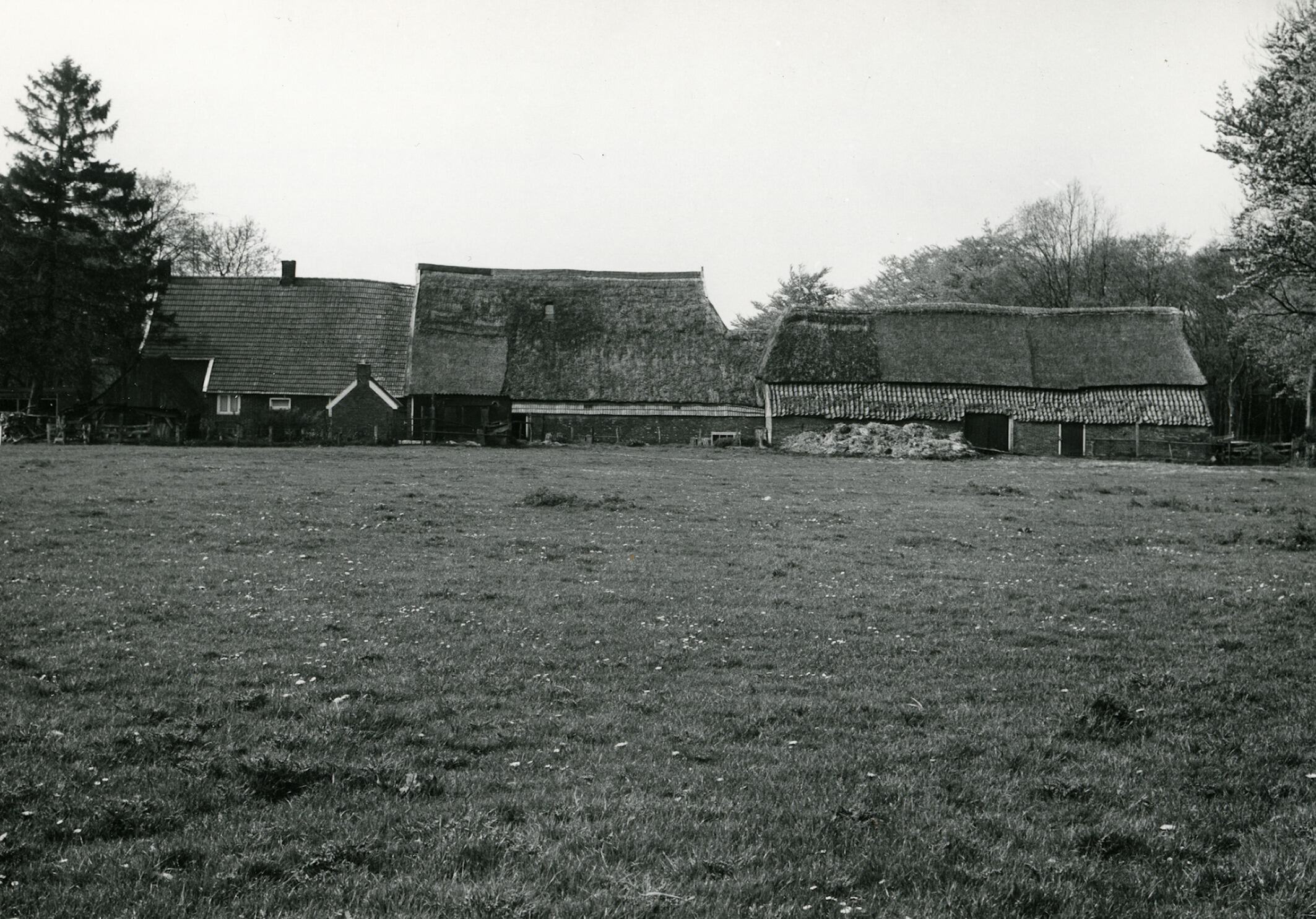 Zijaanzicht van een boerderij aan de Brink 2 (voorheen Zuidvelde 31) in Zuidvelde, een dorp ten zuiden van Norg. Links is het woongedeelte, in het midden het bedrijfsgedeelte en rechts een aangebouwde schaapskooi. Naast de boerderij staat een bak- of kookhuisje.