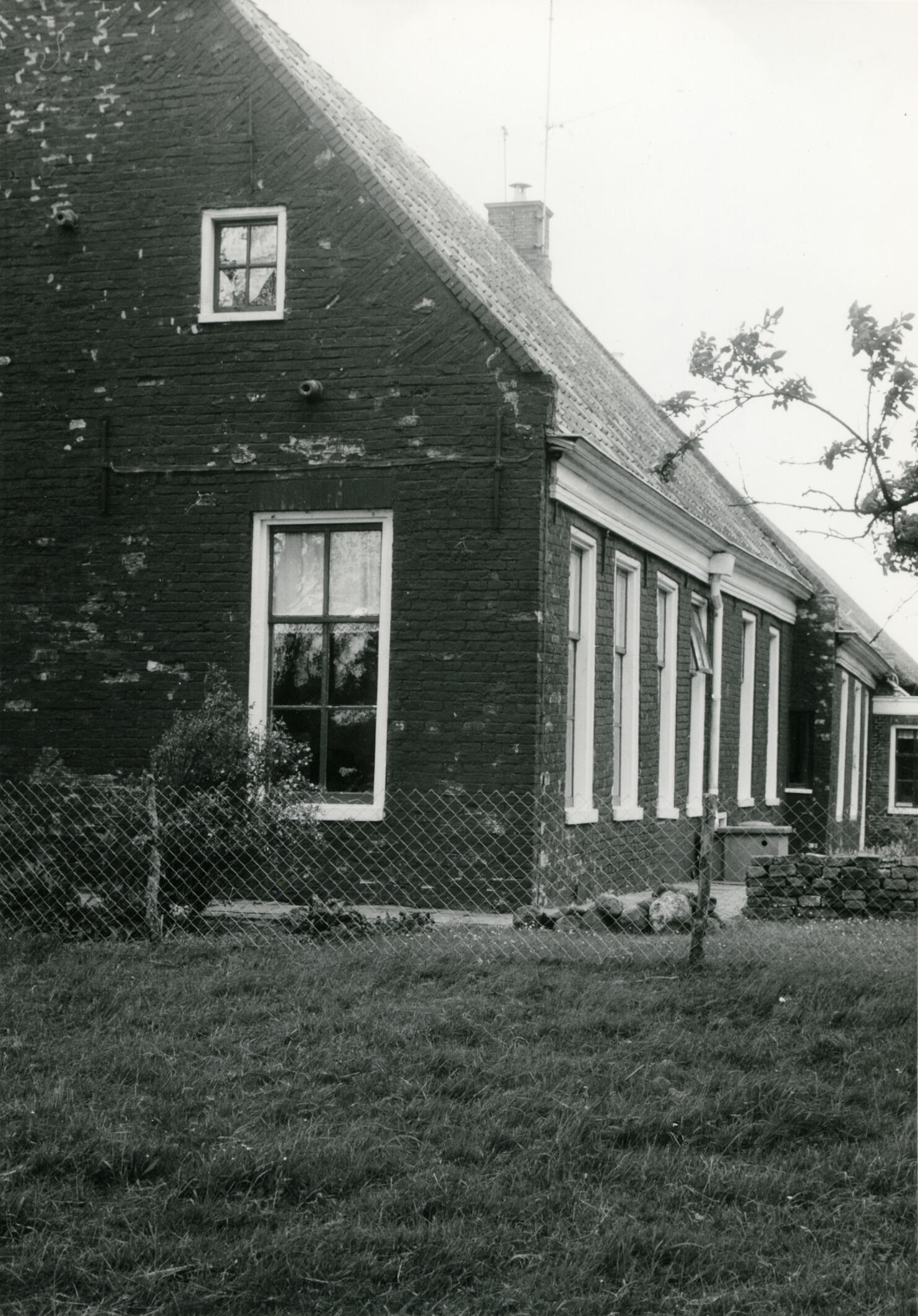 Voor- en zijgevel van het woonhuis van boerderij 'Nienoord' aan Toornwerd 81 in Toornwerd. Achter het woonhuis staat de schuur.