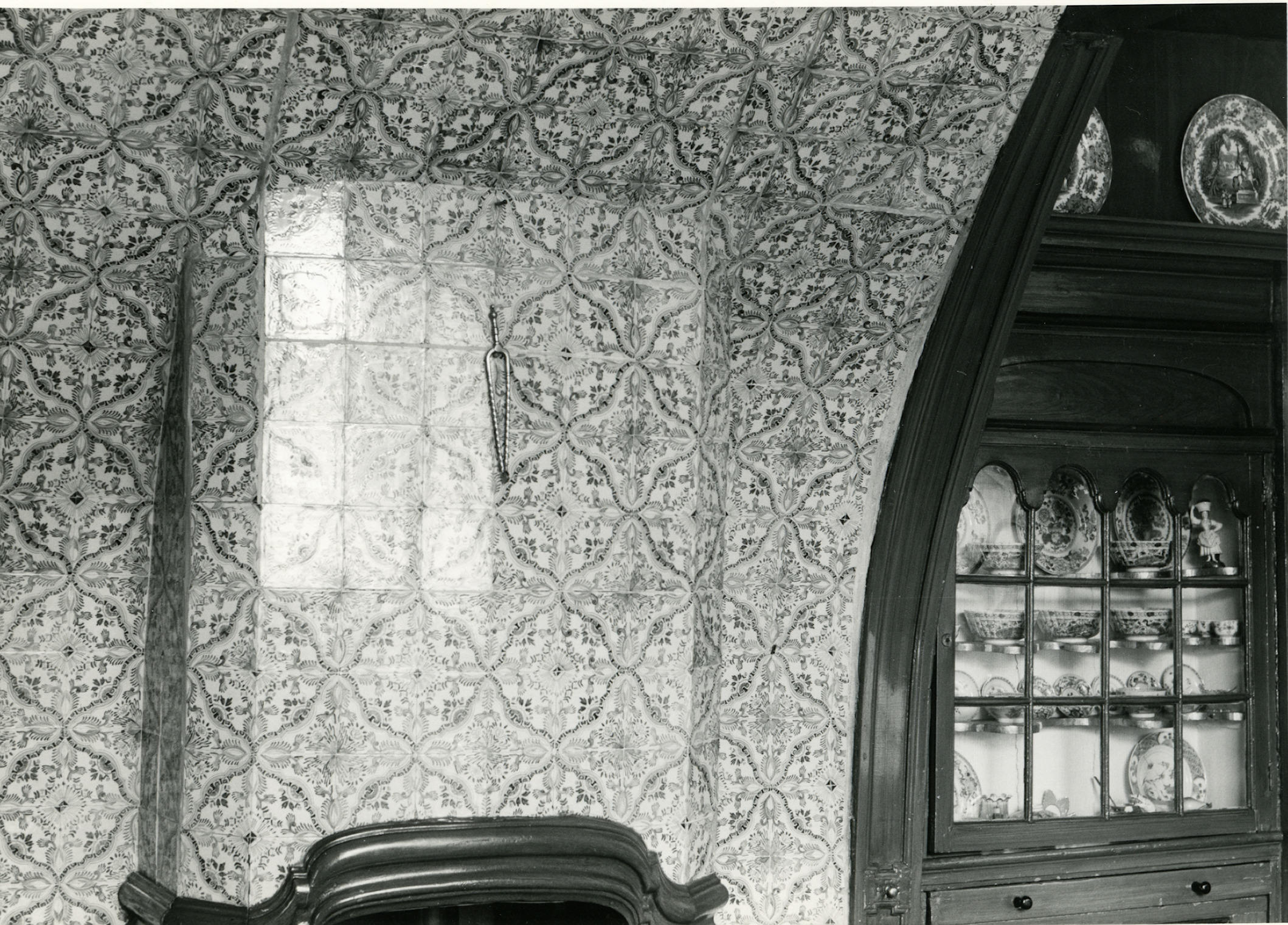 Een betegelde rookvang, een zogenoemde smuiger, in een boerderij aan de Gouwe 48 in Gouwe, bij Hoogwoud.