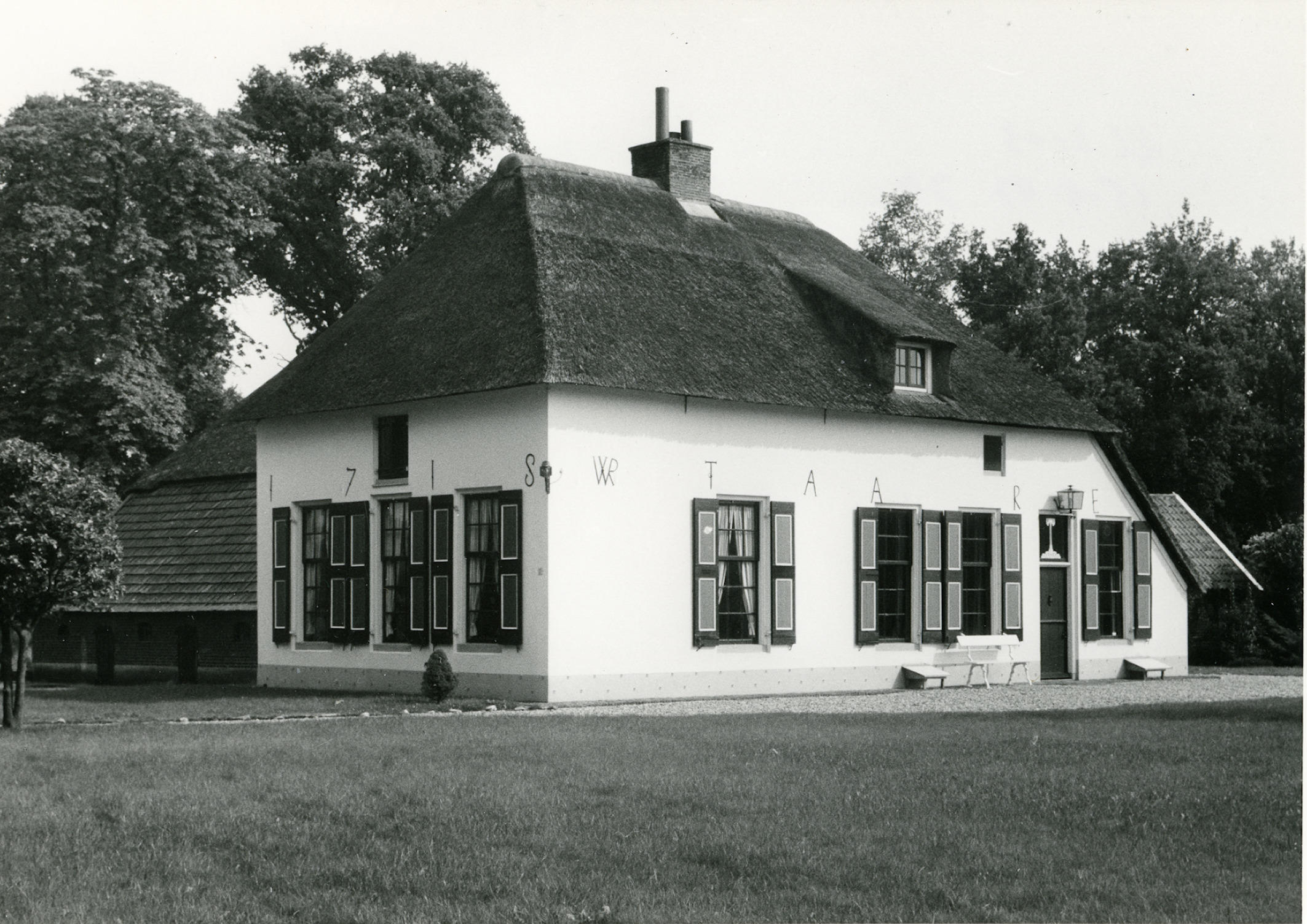 Zij- en voorgevel van een woonboerderij aan de Chevalierlaan 15 in Tongeren (Gelderland). De boerderij heeft een L-vormige plattegrond. Op de muurankers in de voorgevel staan de letters: 'WR T A A R E'. Het bouwjaar is 1718, volgens muurankers in de zijgevel. De boerderij is gerestaureerd en als zomerhuis ingericht. De ramen hebben roedenverdeling ...