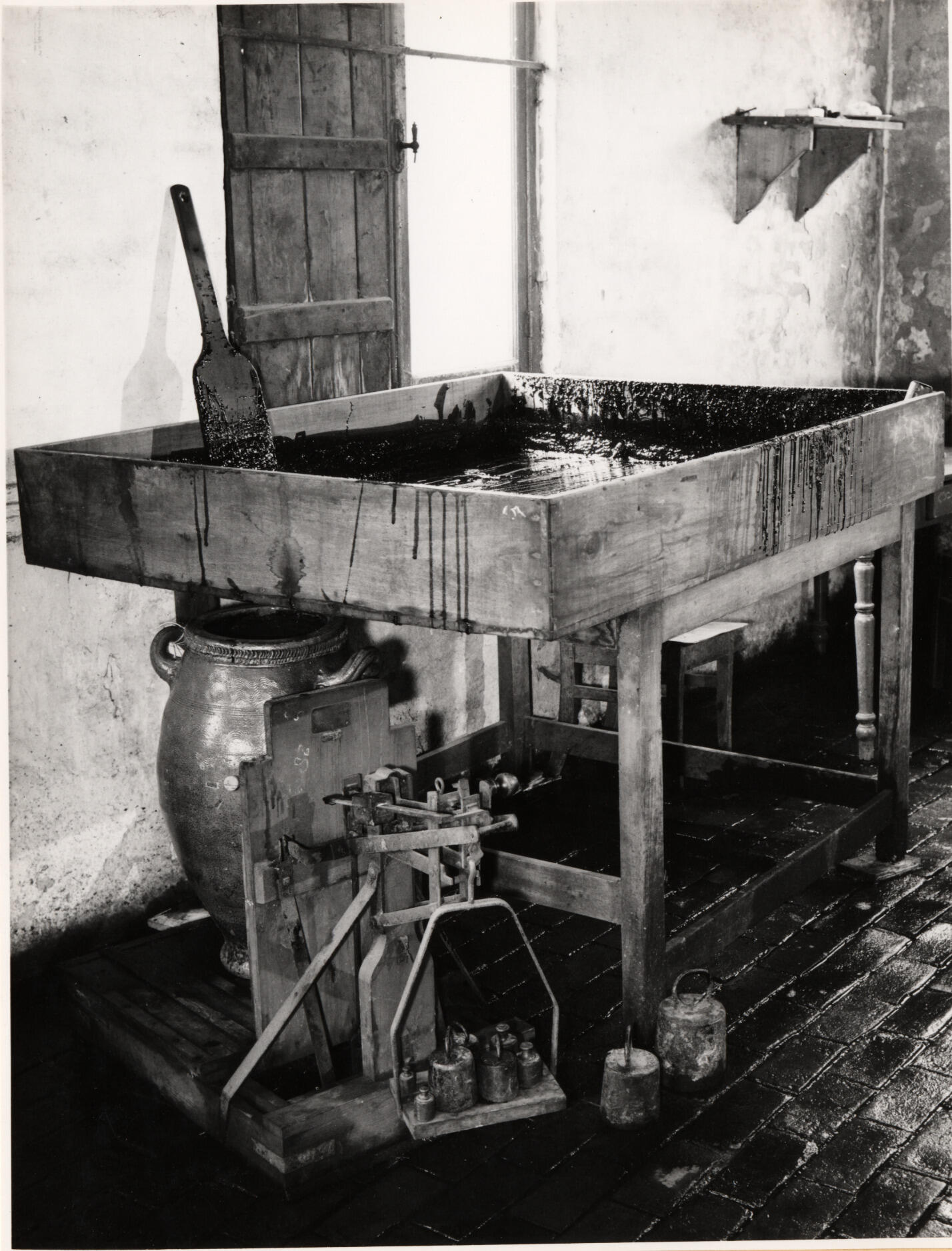 De koeltafel in de stroopkokerij van Eduard Duyzings in Thull, gemeente Schinnen.