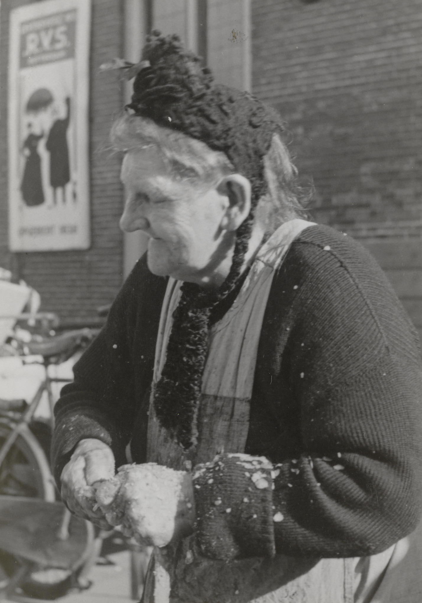 Visverkoopster, Zwolle, circa 1942 (zwart-wit foto)