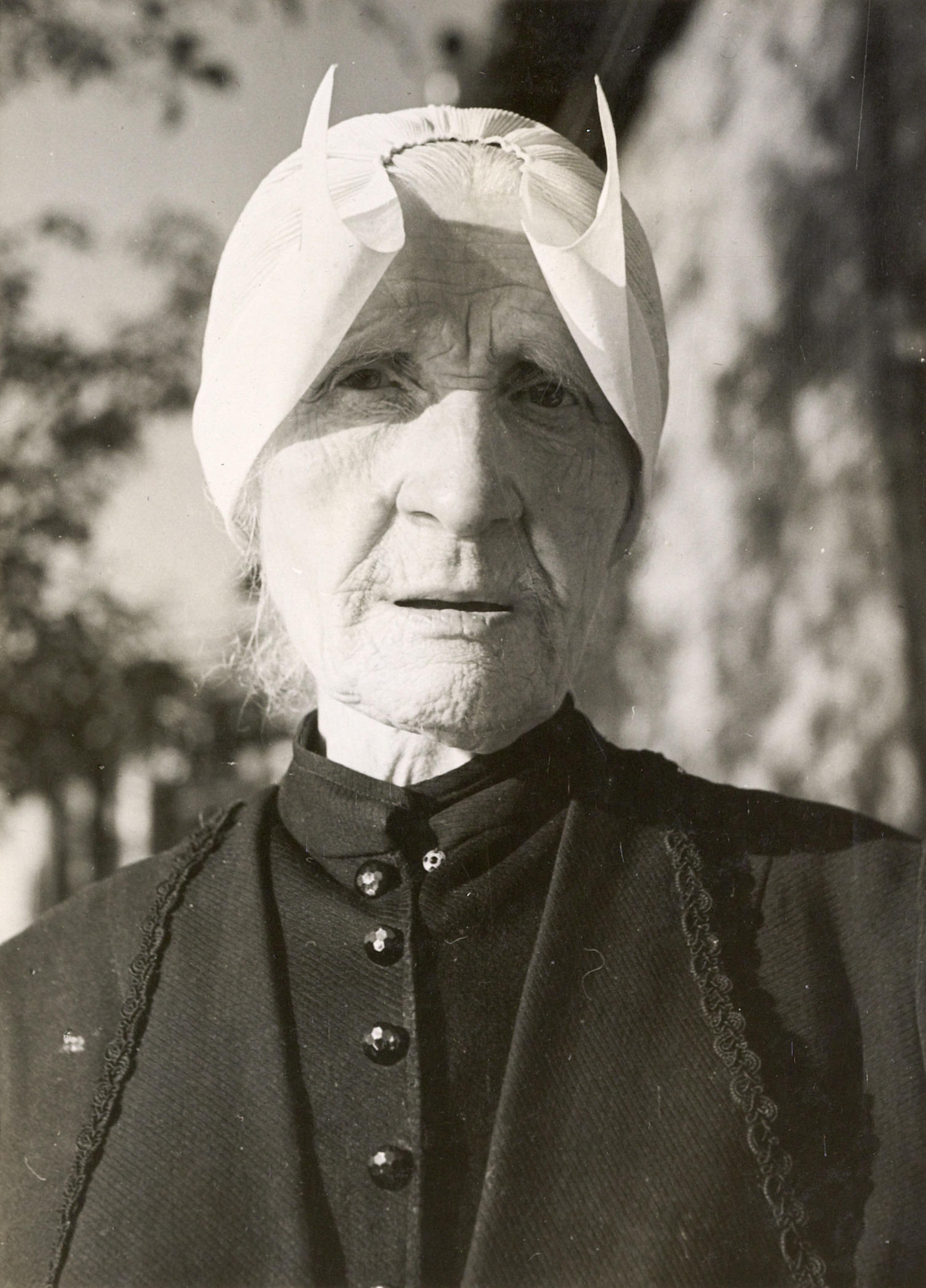 Vrouw uit Ottoland in Zuid-Hollandse dracht, circa 1942 (zwart-wit foto)