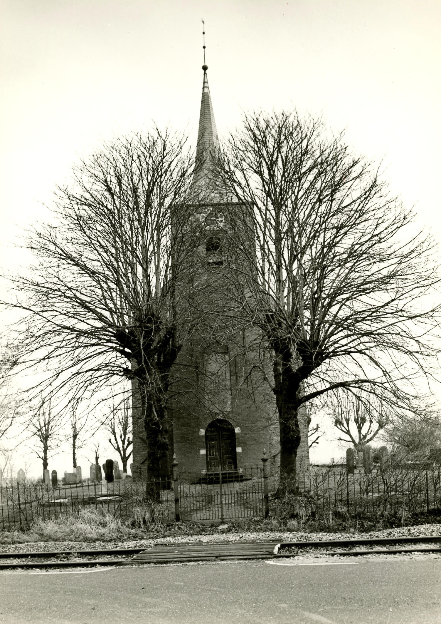 De kerk in Heveskes. Het Groningse dorp Heveskes werd in de periode 1960-1975 afgebroken ten behoeve van de uitbreiding van industriegebieden rond Delfzijl. Uiteindelijk bleef alleen de kerk van Heveskes gespaard. Op de voorgrond is een goederenspoorlijn te zien, de Stamlijn Delfzijl. In 1974 werd geopperd om de kerk te verplaatsen naar het Nederlands Openluchtmuseum ...