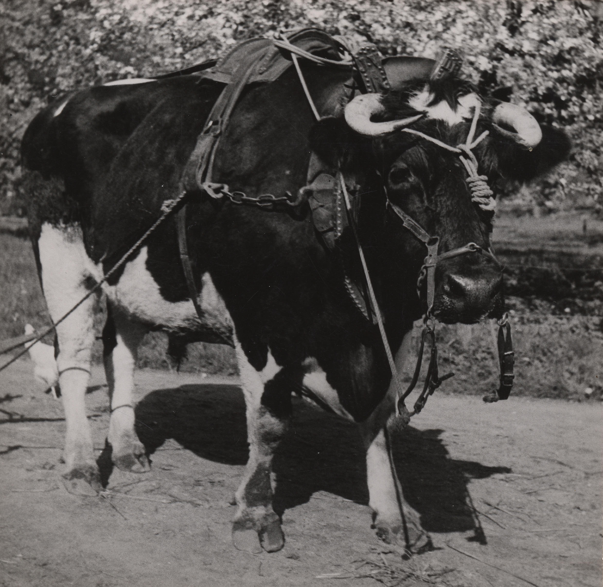 Os met ossentuig, Eerbeek, 1945 (zwart-wit foto)