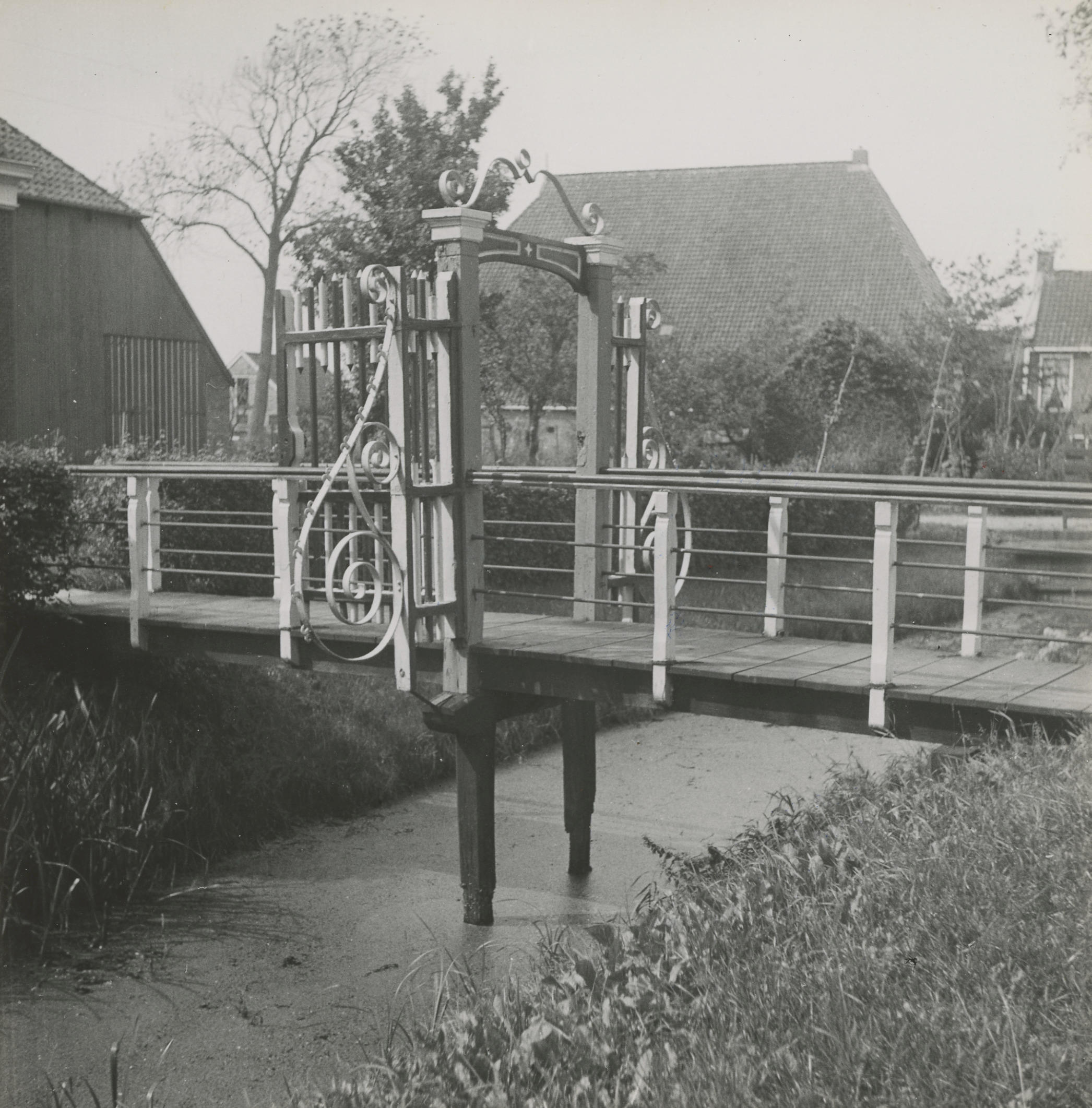 Brug met toegangspoort, Lippenwoude, 1942 (zwart-wit foto)